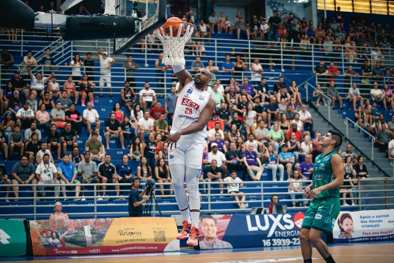 Lucas Dias erra tentativa de enterrada.