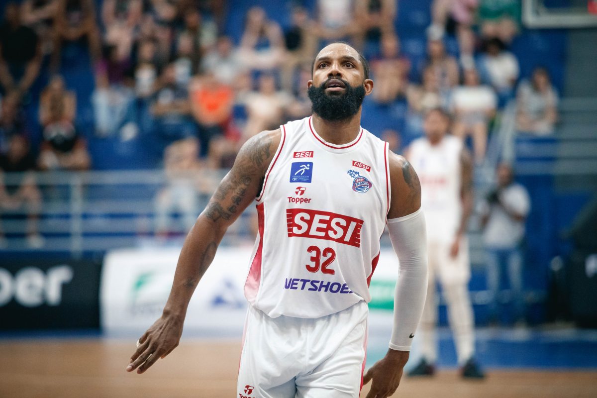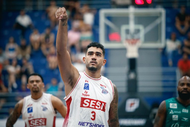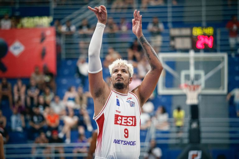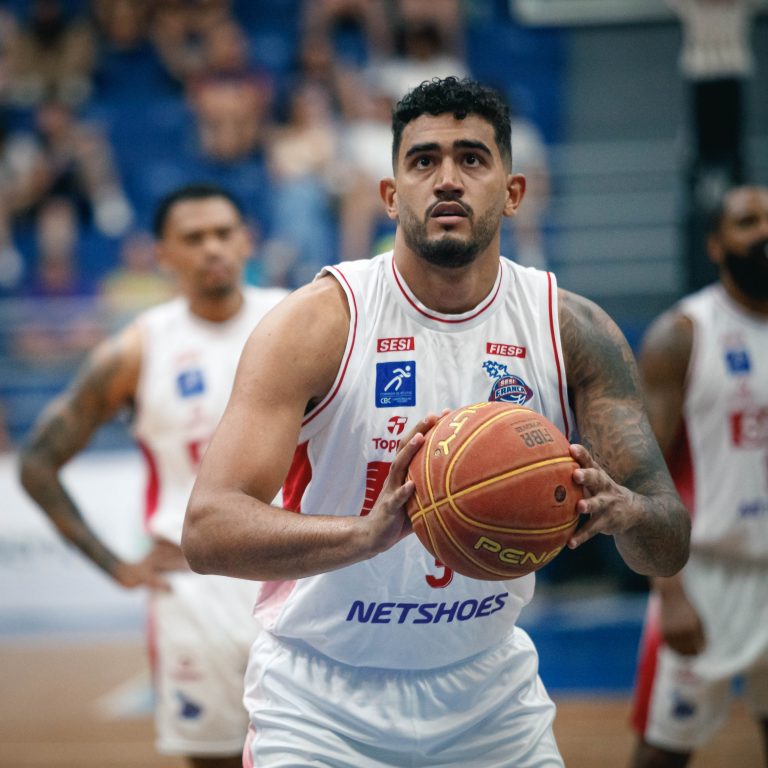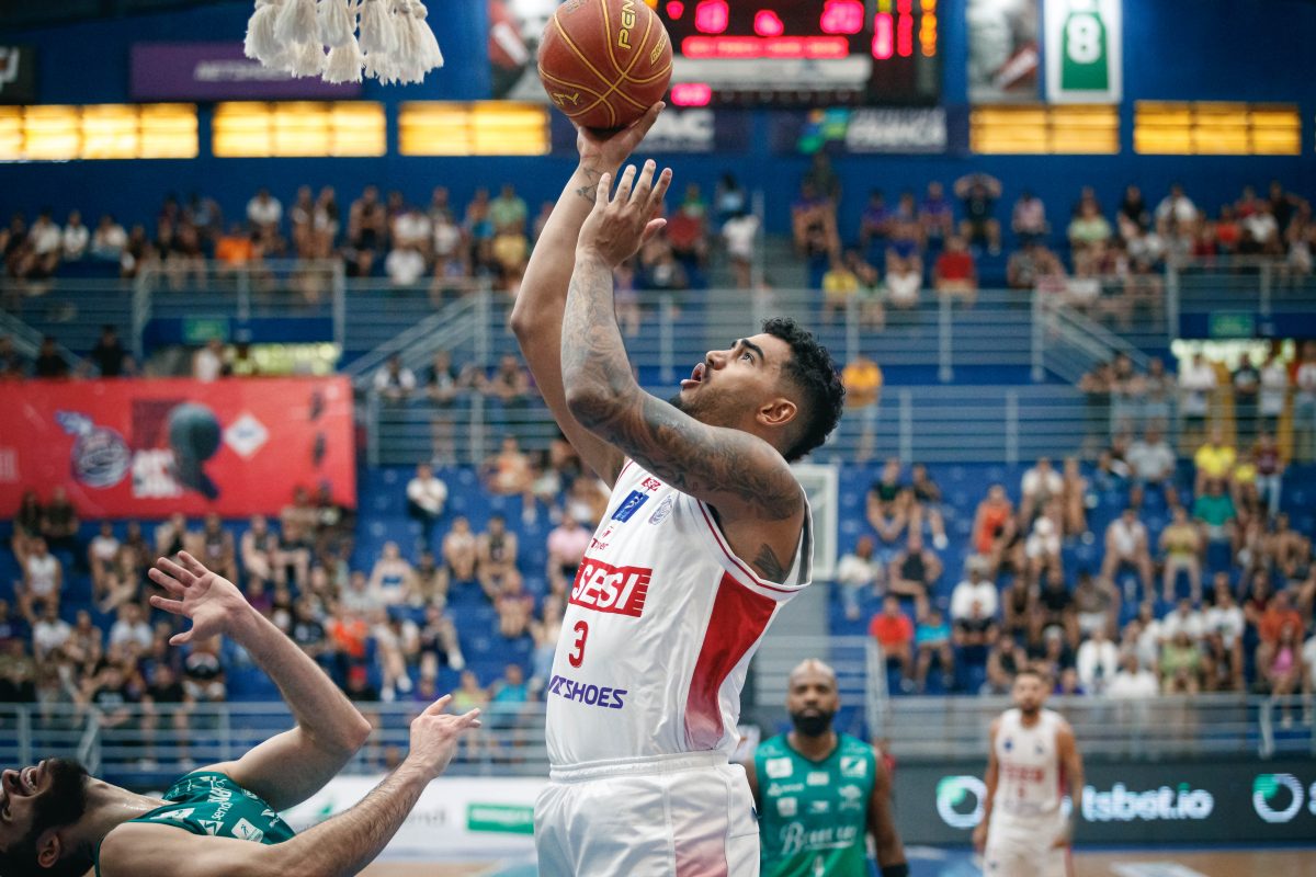 Lucas Dias erra tentativa para três pontos.
