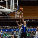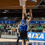 Aguerre pega rebote defensivo.