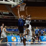Agapy pega rebote ofensivo.