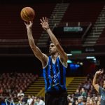 Gustavo acerta arremesso de dois pontos.