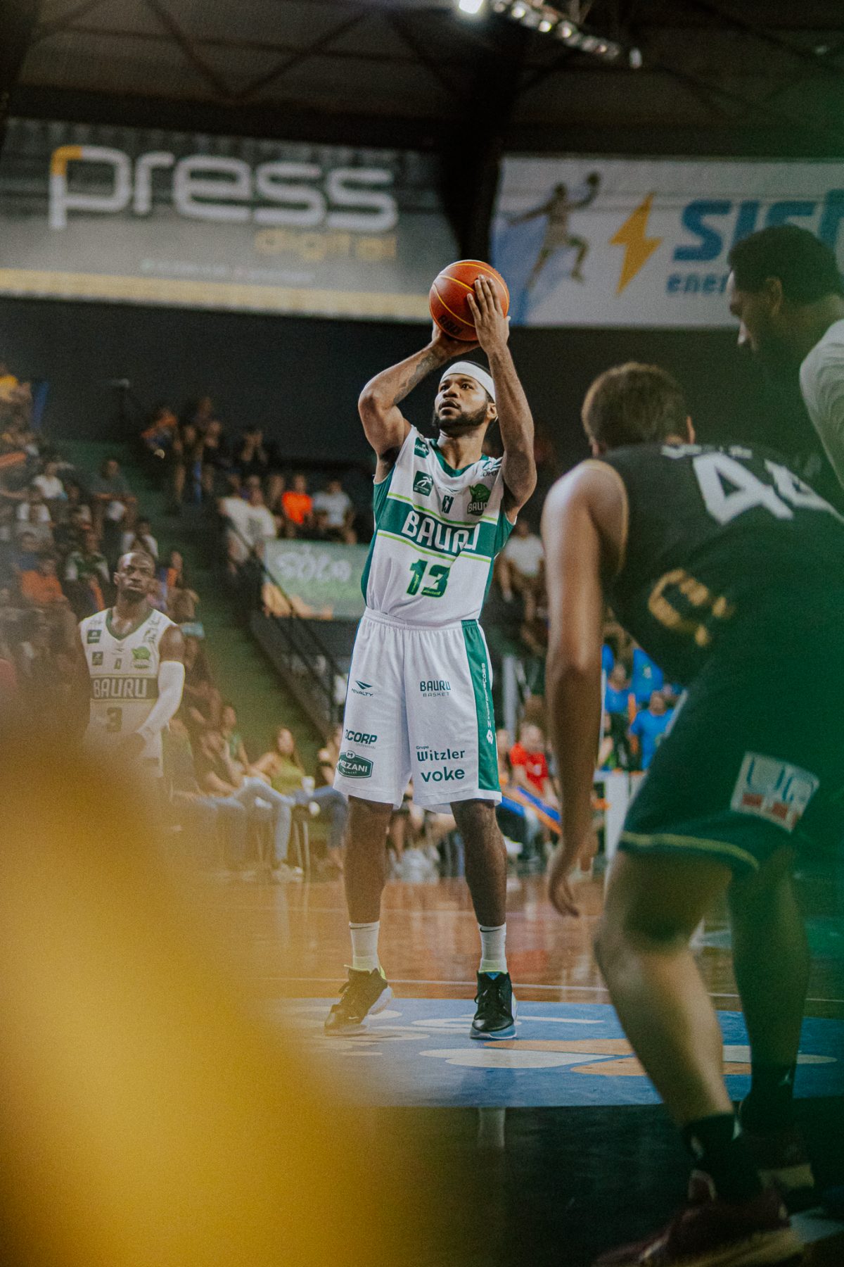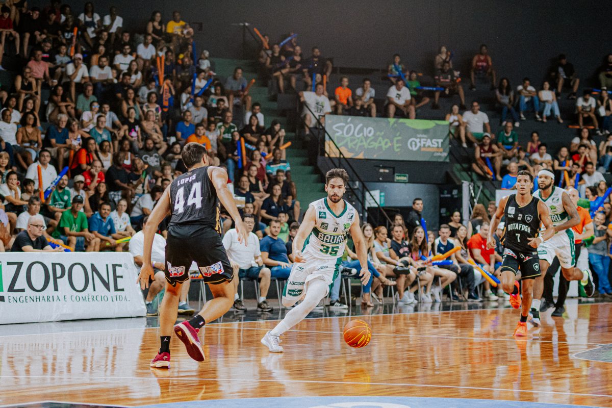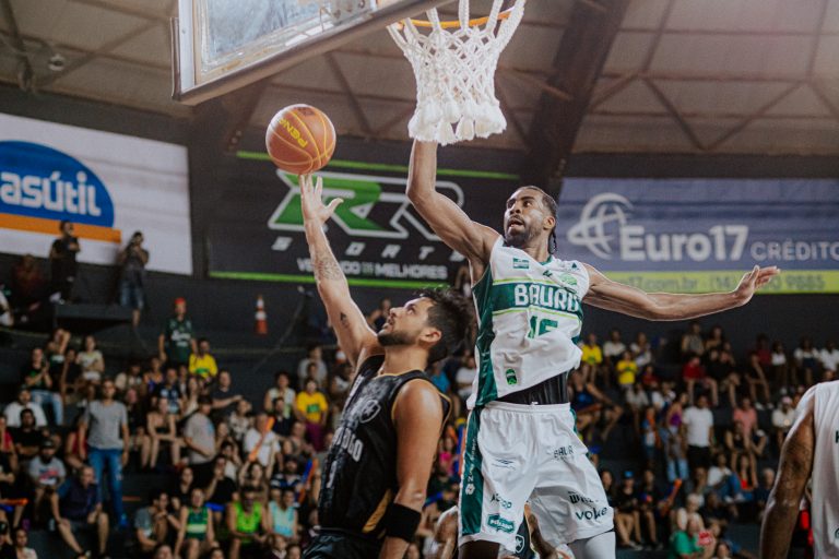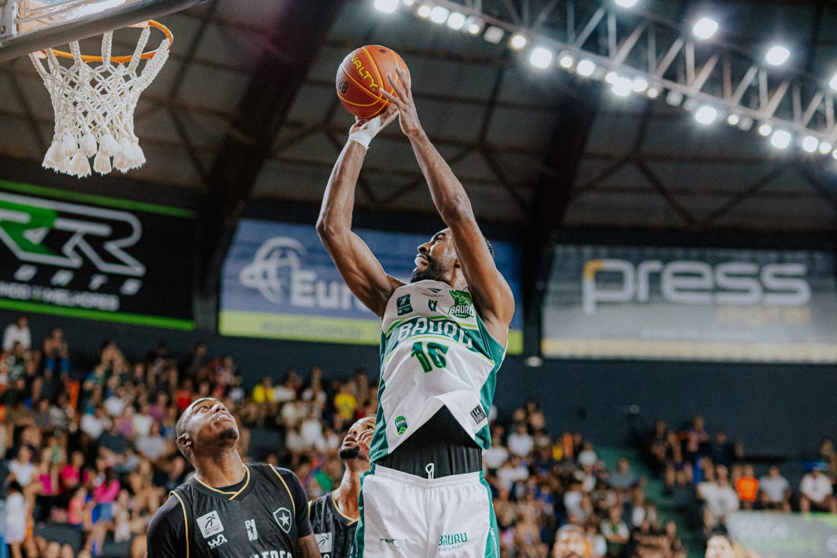 Bauru pega rebote ofensivo.