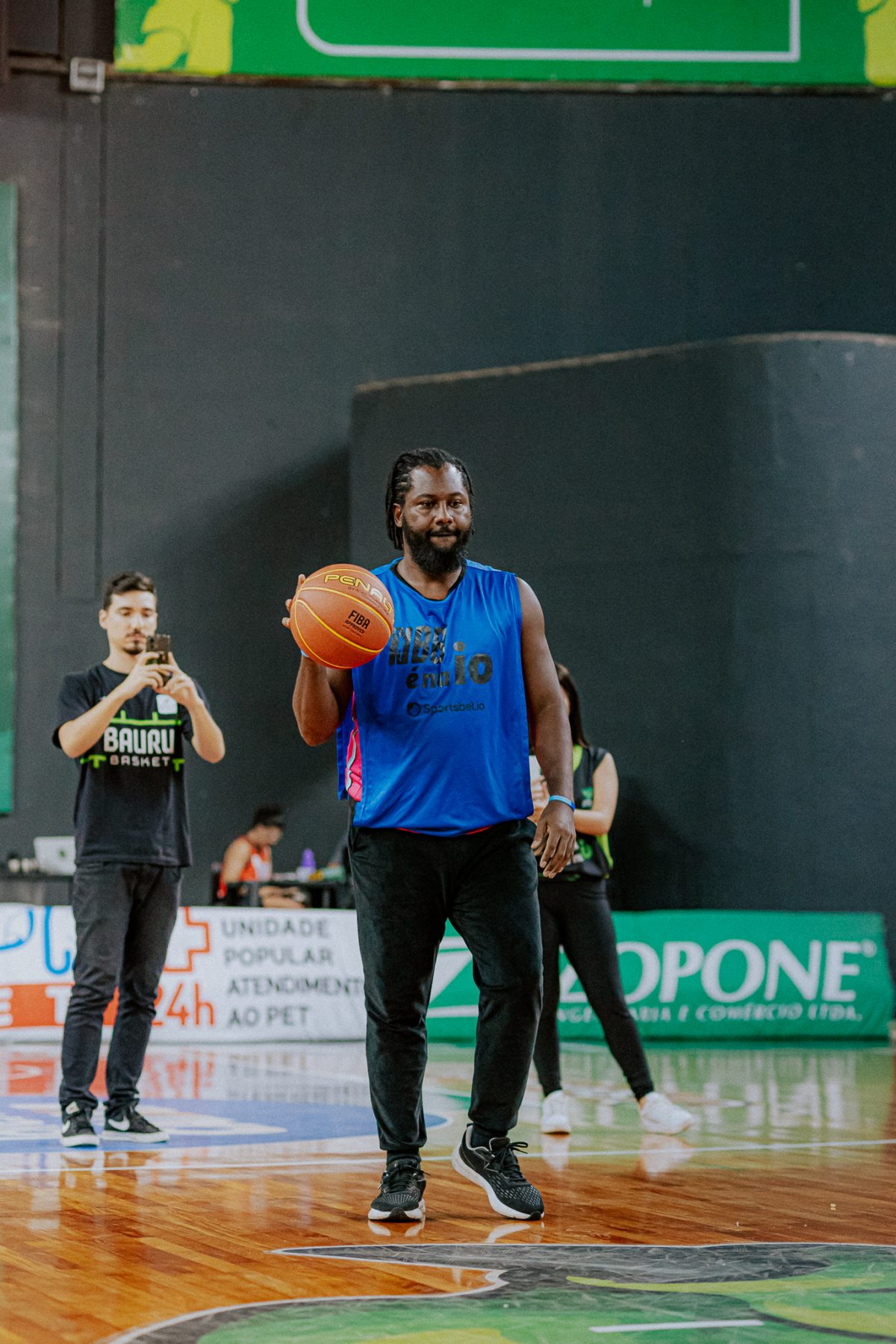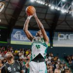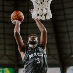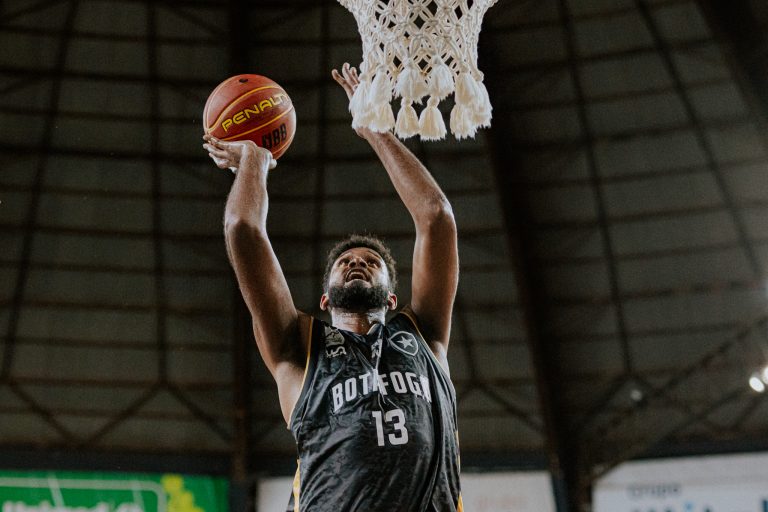 Emanuel acerta arremesso de dois pontos.