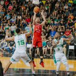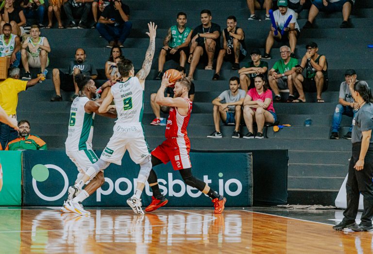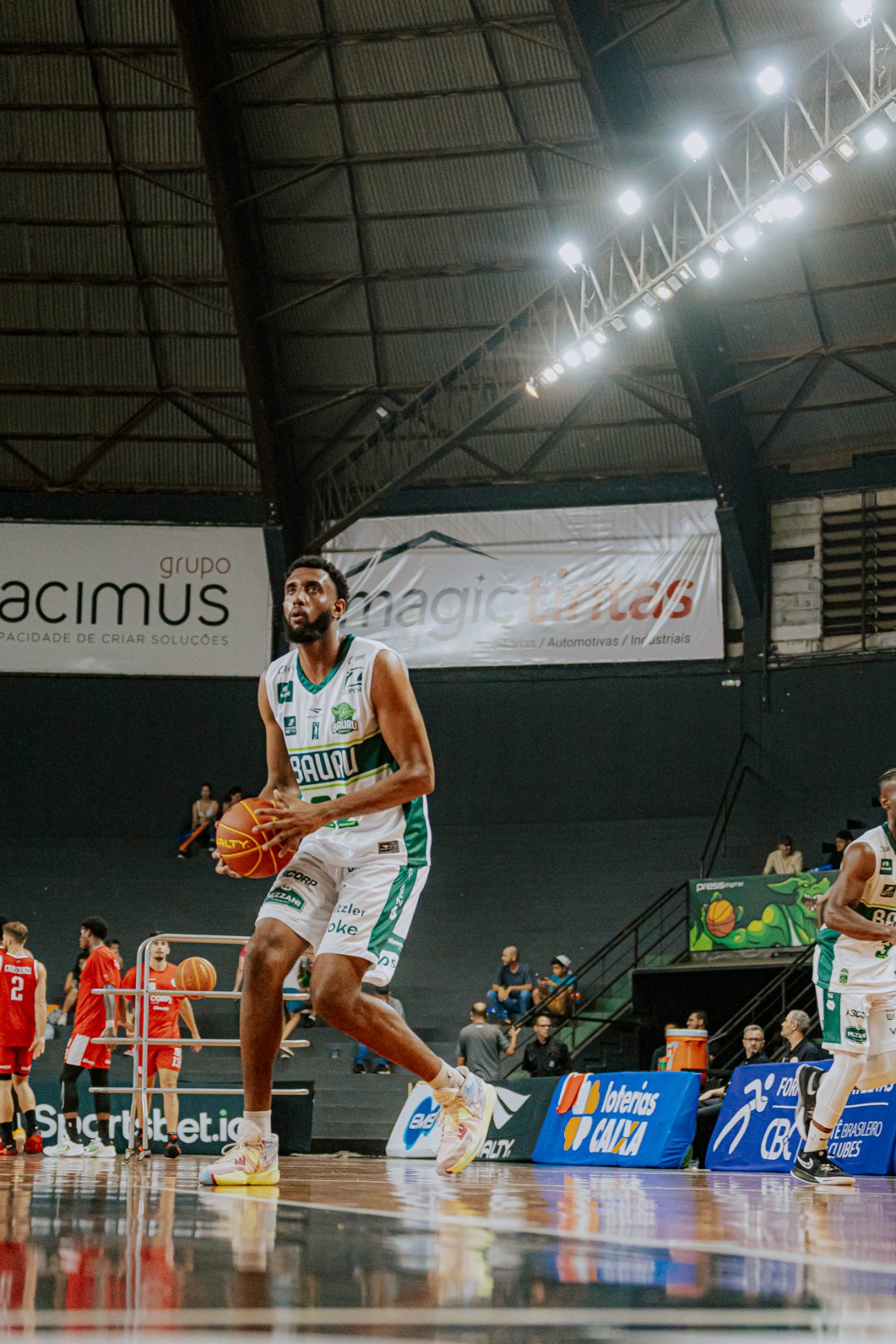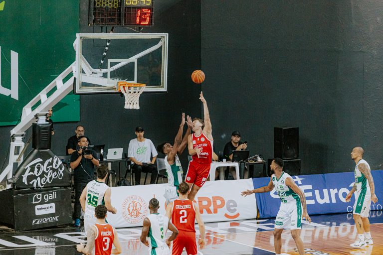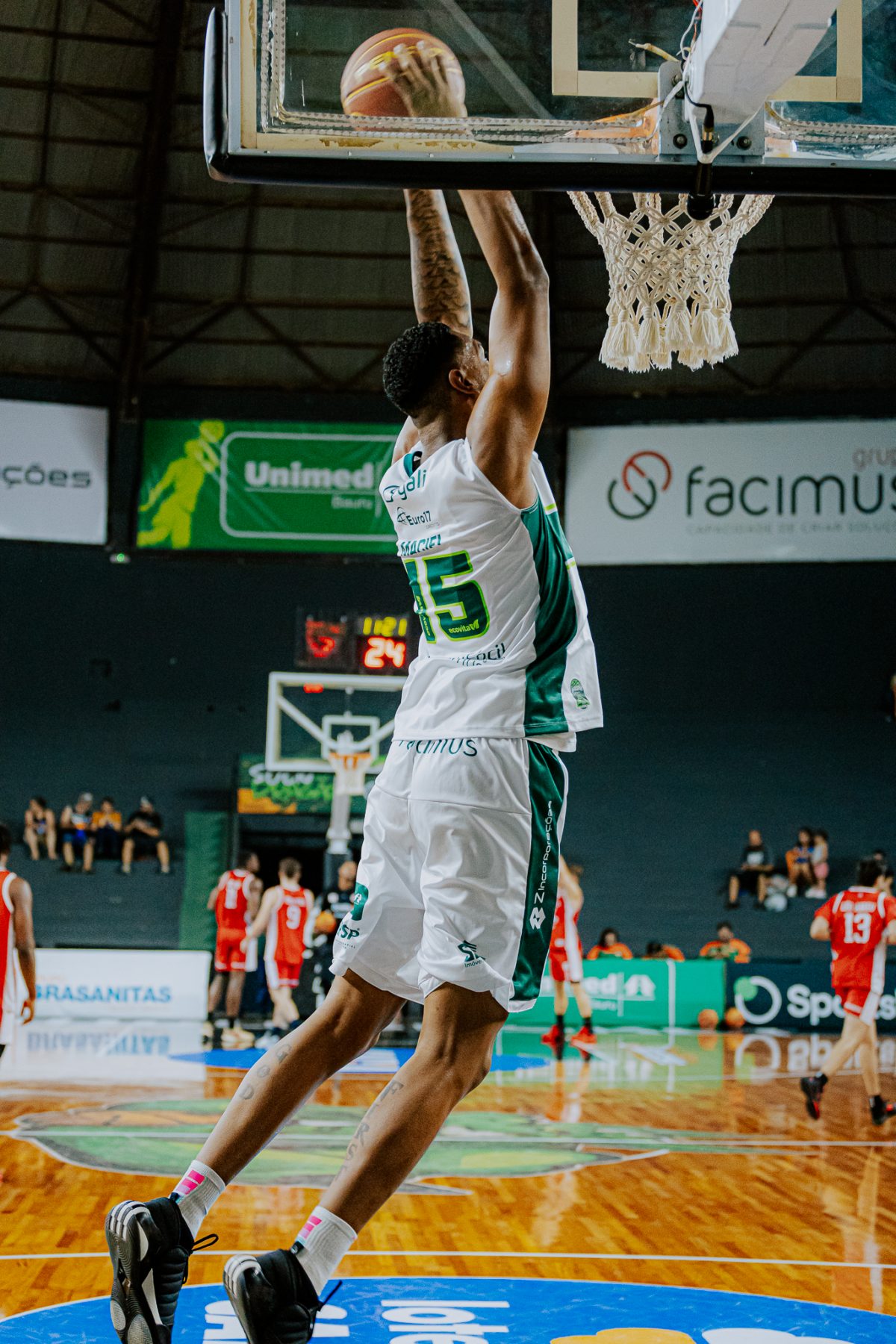 Maciel acerta arremesso de dois pontos.