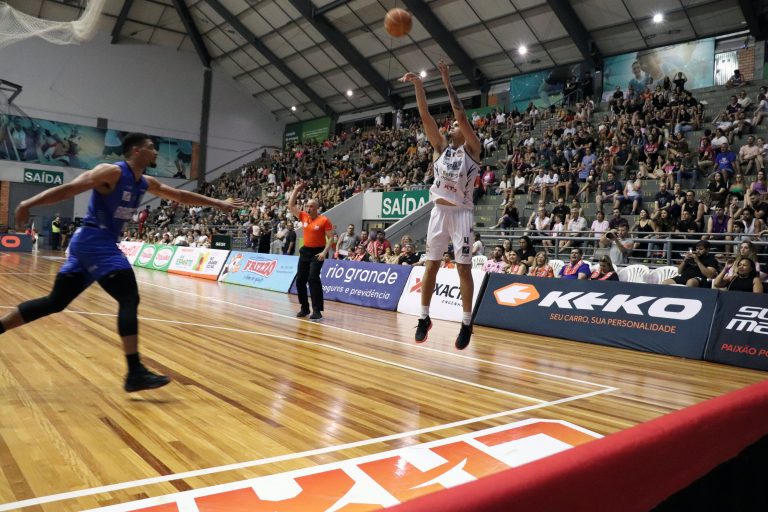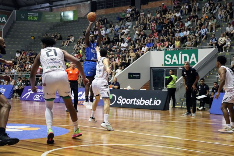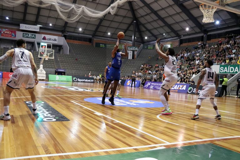 Vini Chagas acerta arremesso de dois pontos.