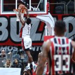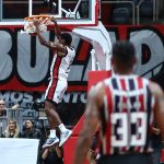 Scott pega rebote ofensivo.