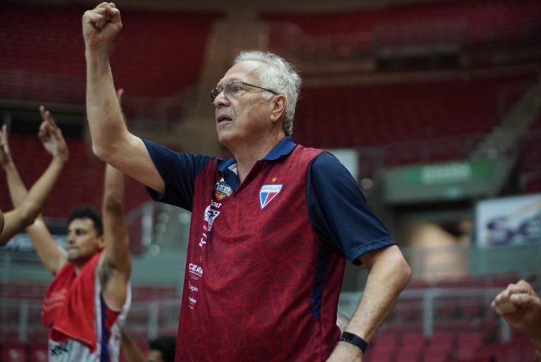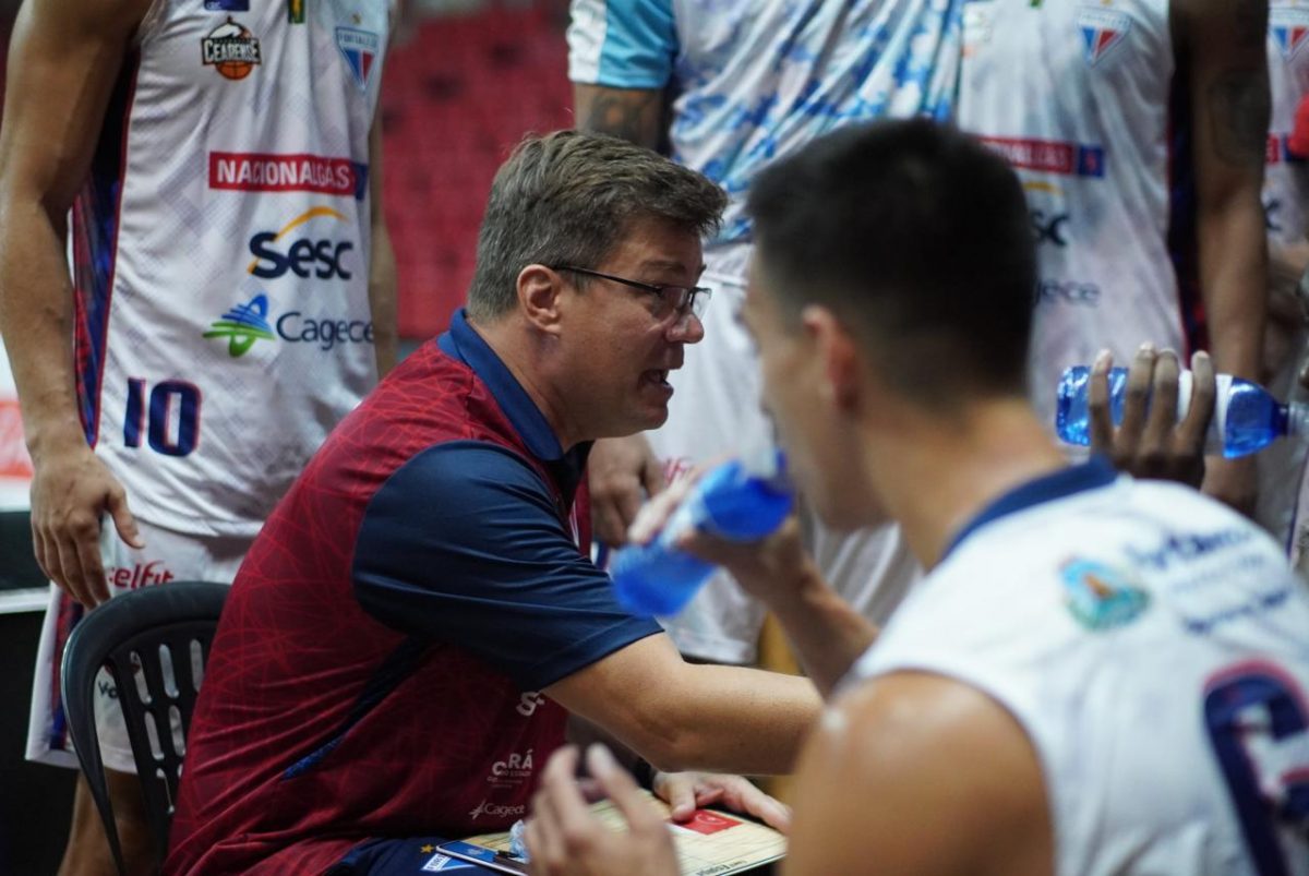 Técnico da equipe Fortaleza Basquete Cearense pede tempo.