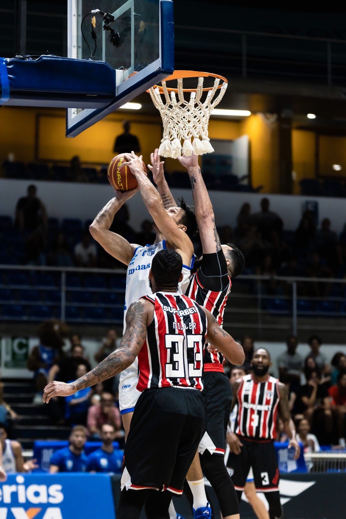 Betinho pega rebote ofensivo.