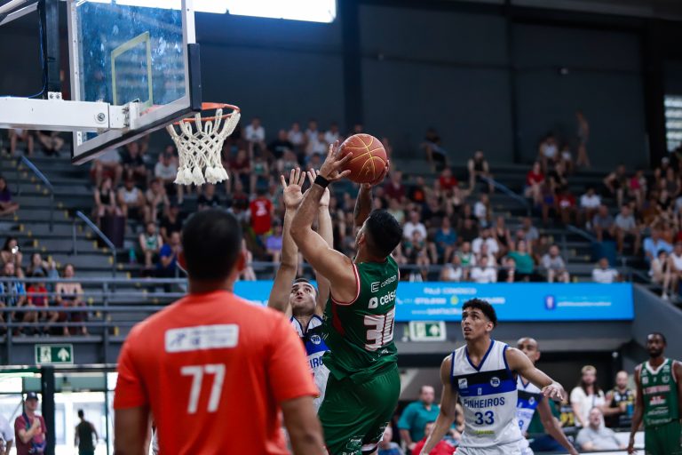 Coimbra acerta arremesso de dois pontos.