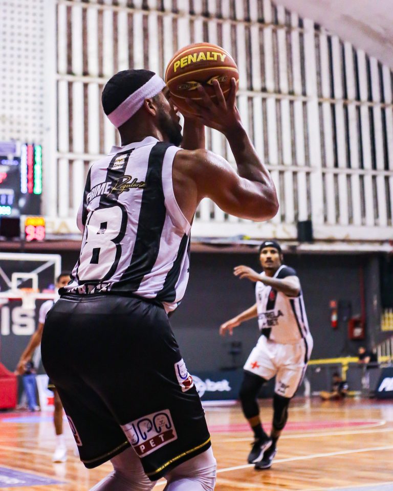 Matheusinho acerta arremesso de dois pontos.