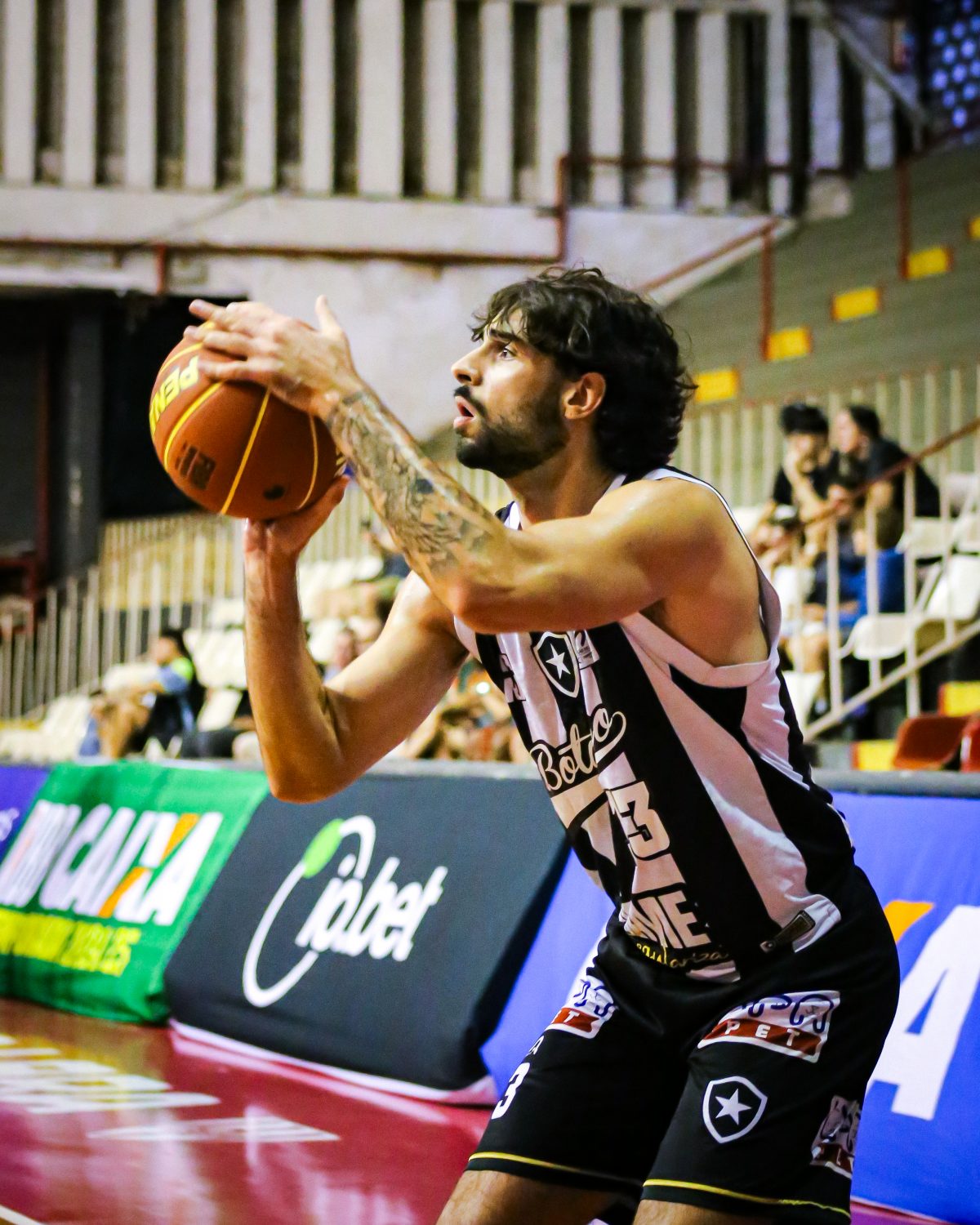 É de três! Alcassa acerta arremesso de três pontos.