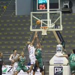 Mogi pega rebote defensivo.