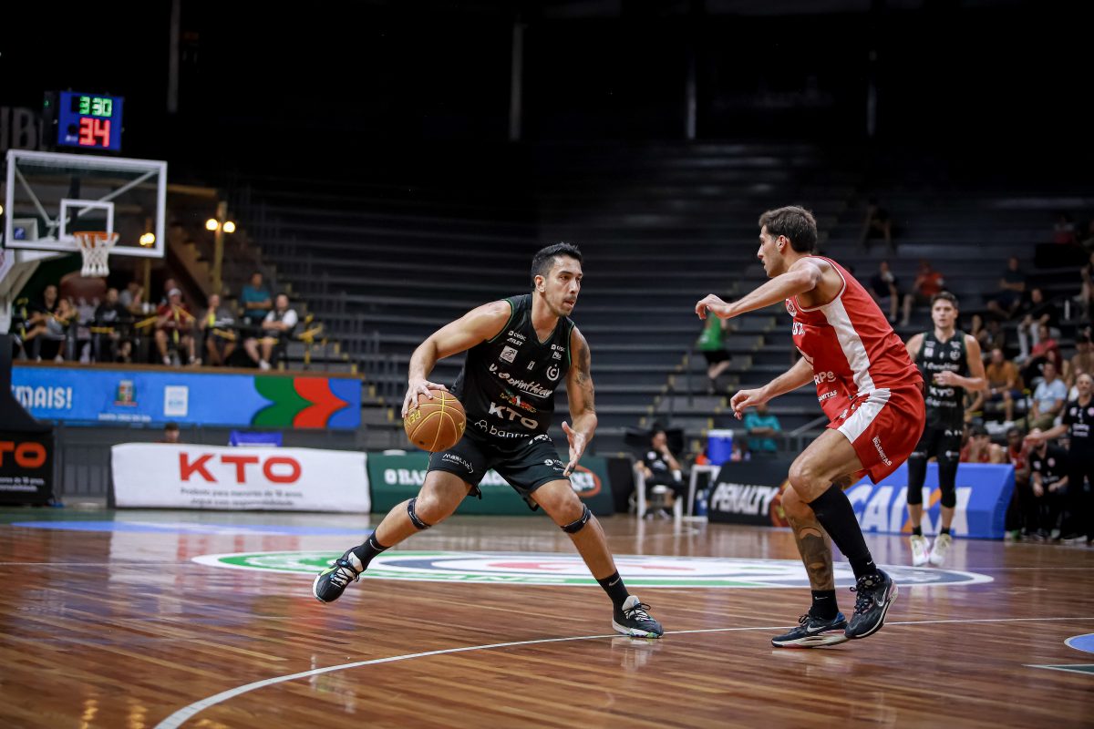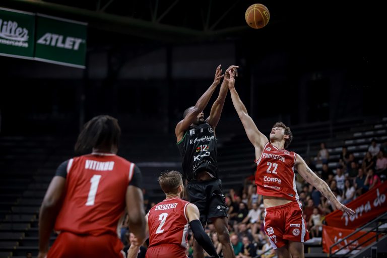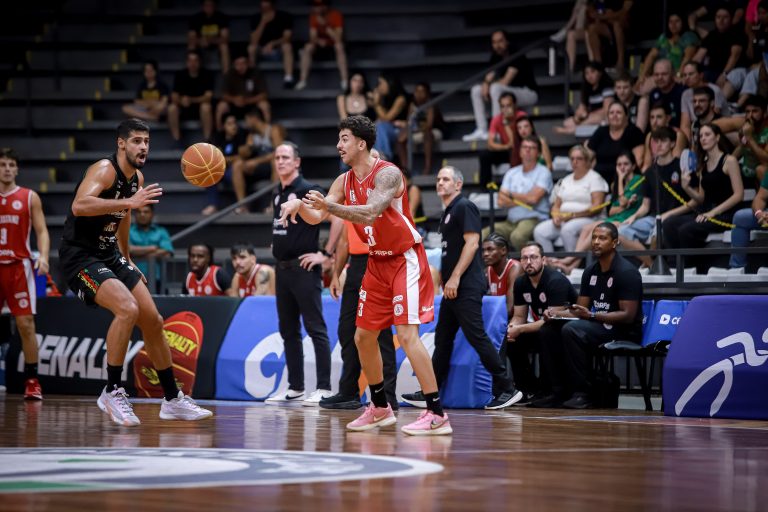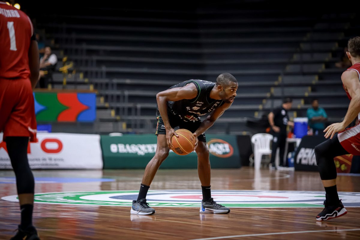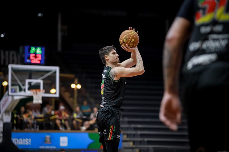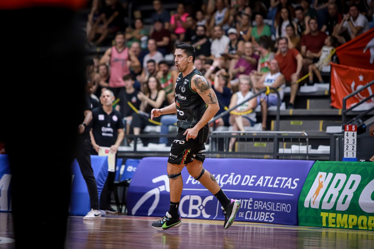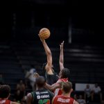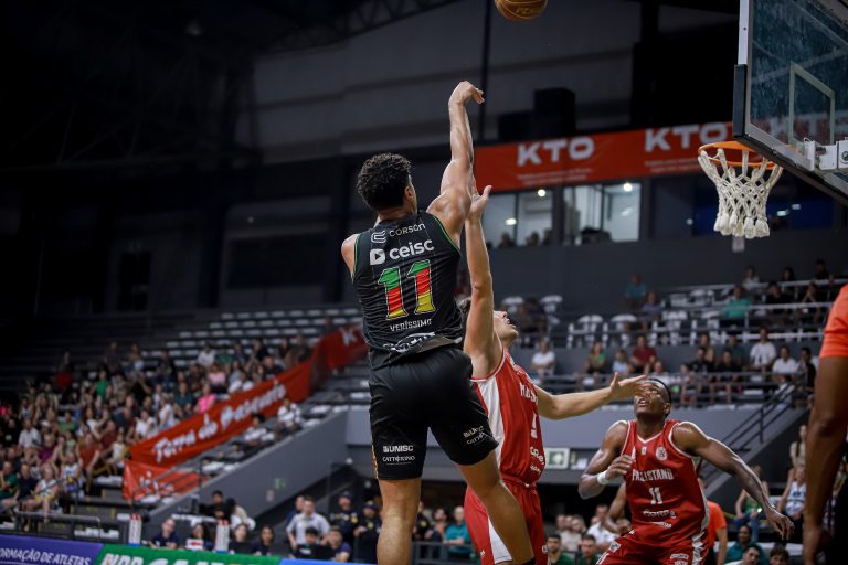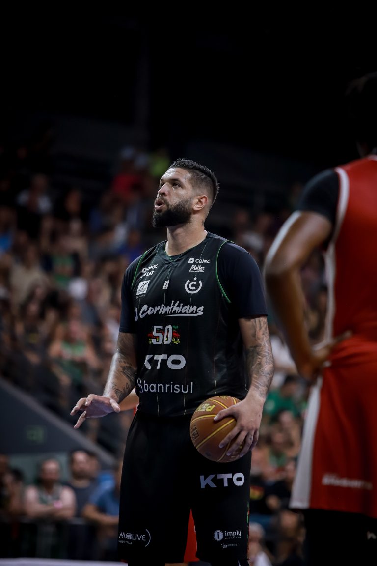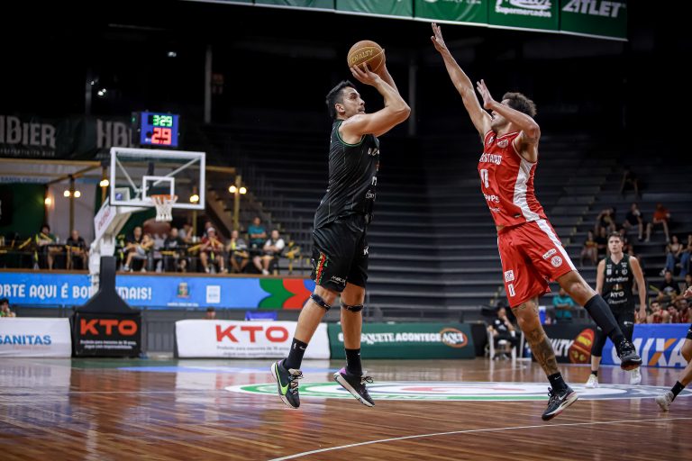 Vitinho acerta arremesso de dois pontos.
