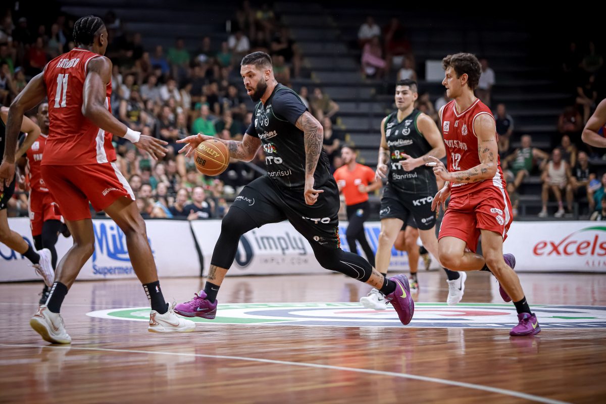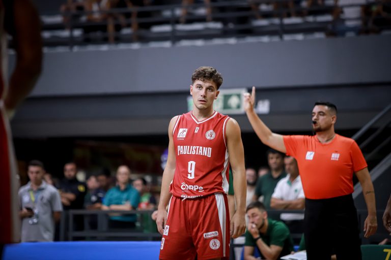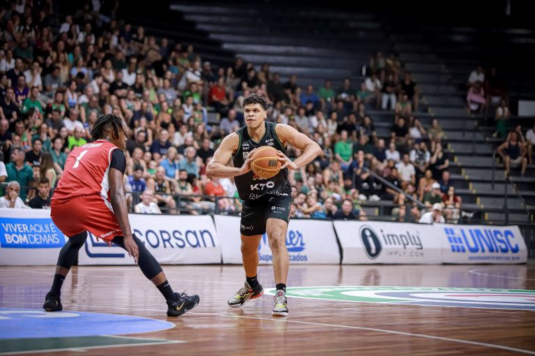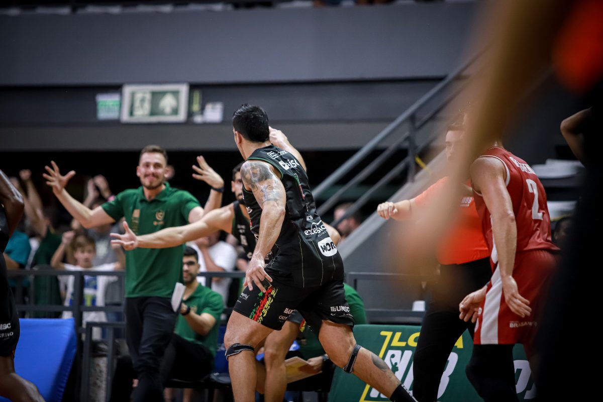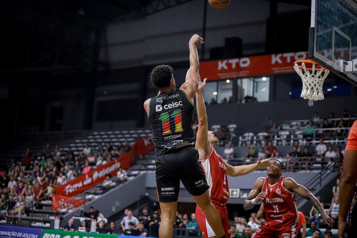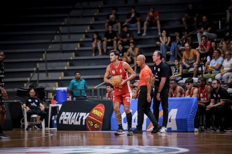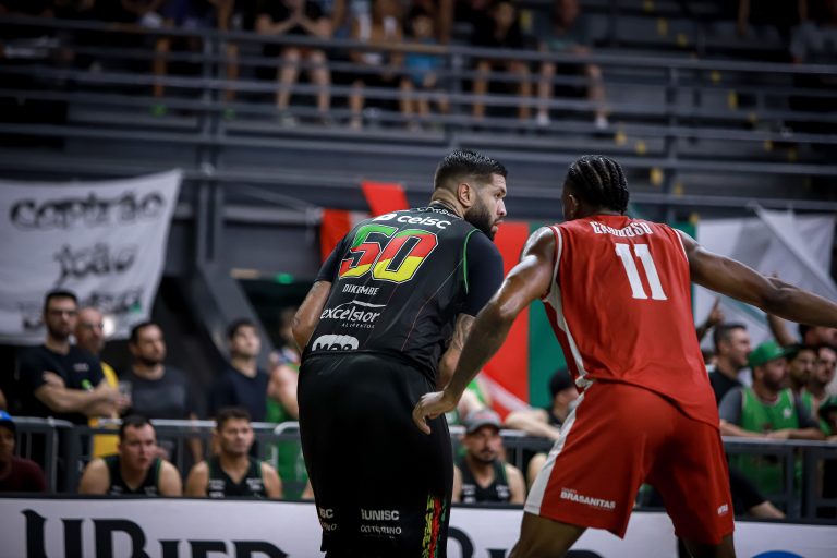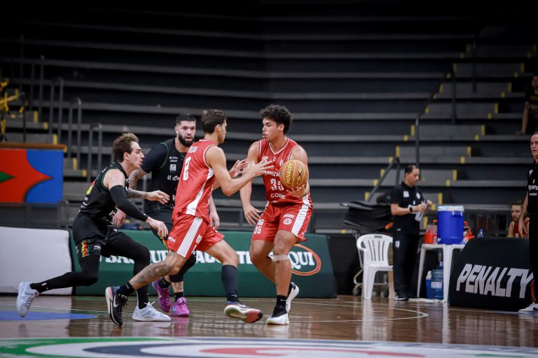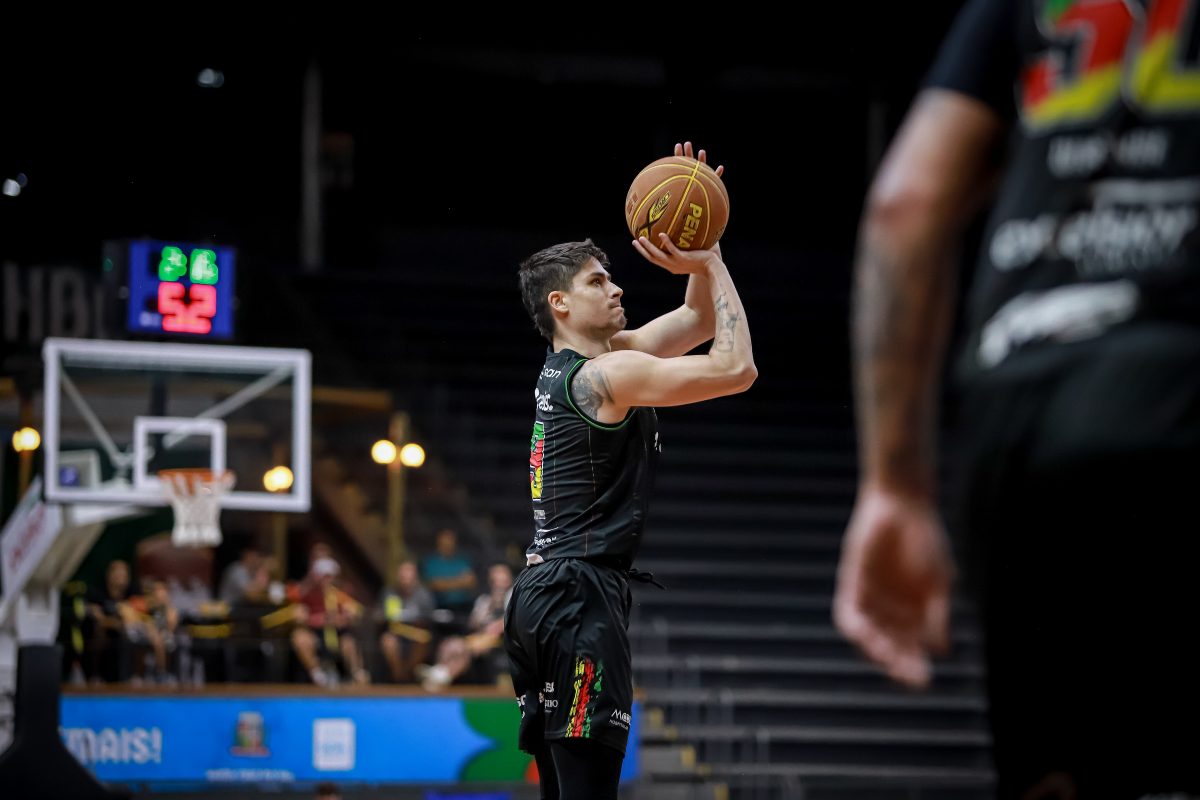 Brunão erra tentativa para três pontos.