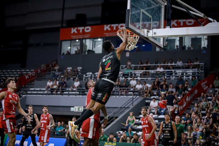 Brunão pega rebote ofensivo.