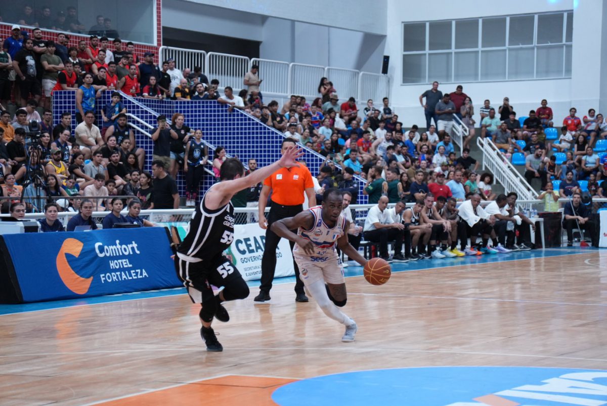Fortaleza Basquete Cearense / CFO pega rebote defensivo.