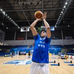 Vithinho acerta arremesso de dois pontos.