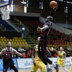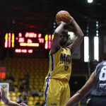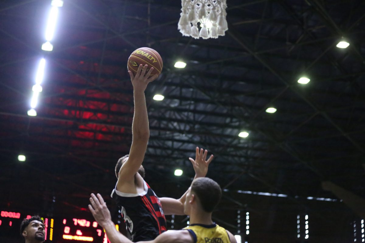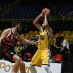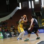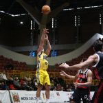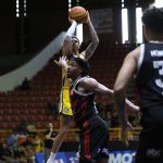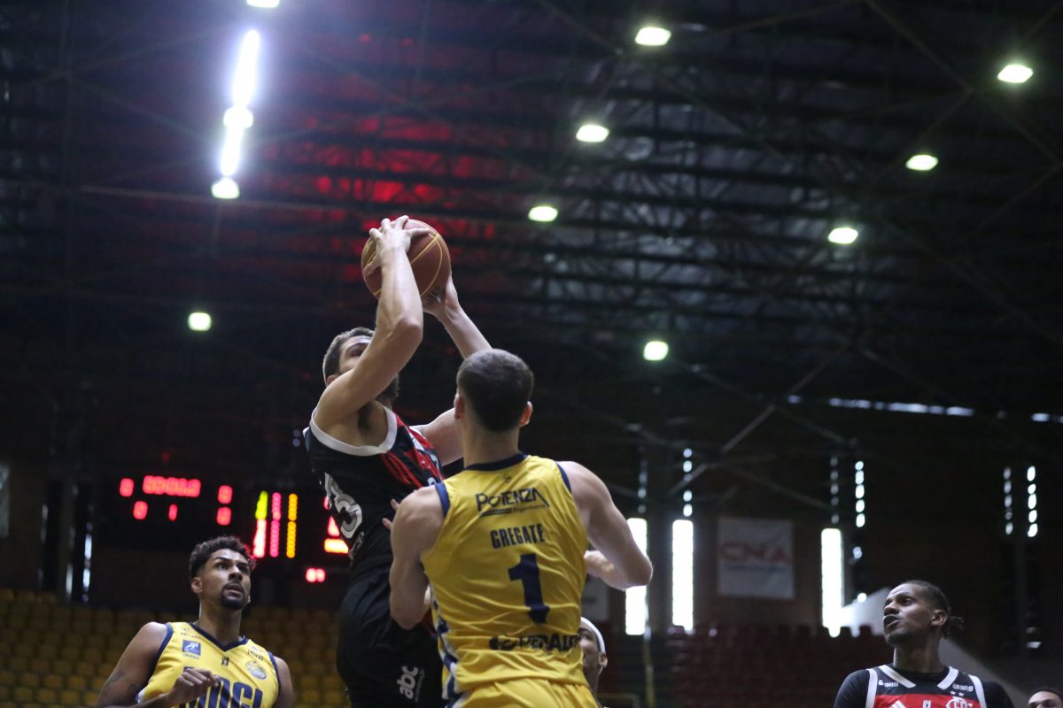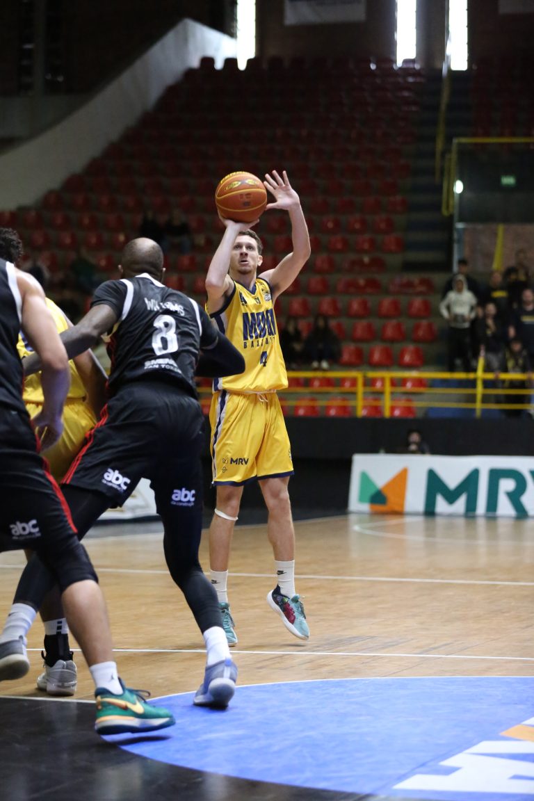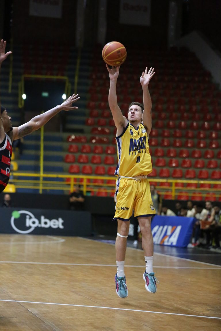 Léo Bispo acerta arremesso de dois pontos.