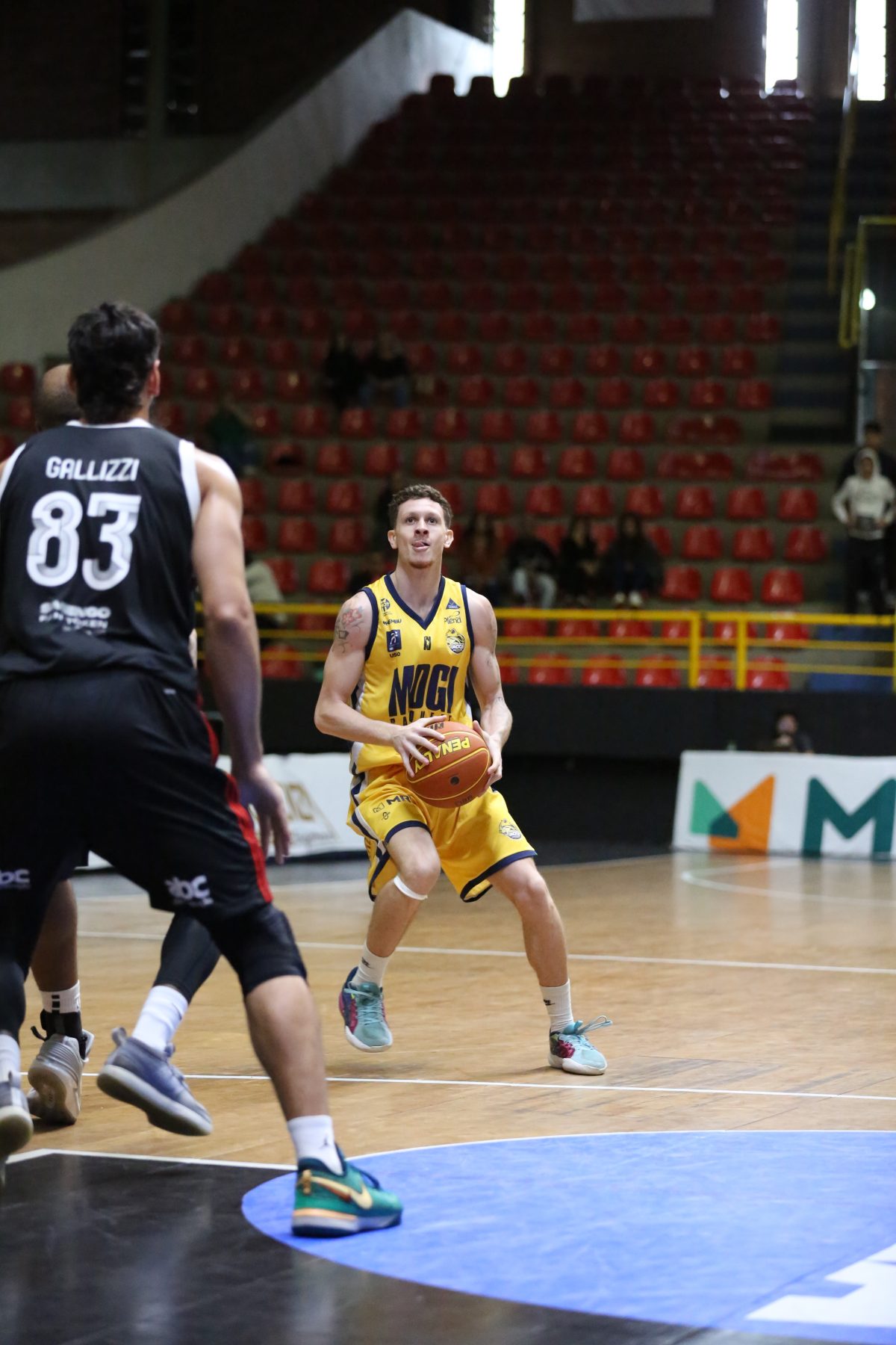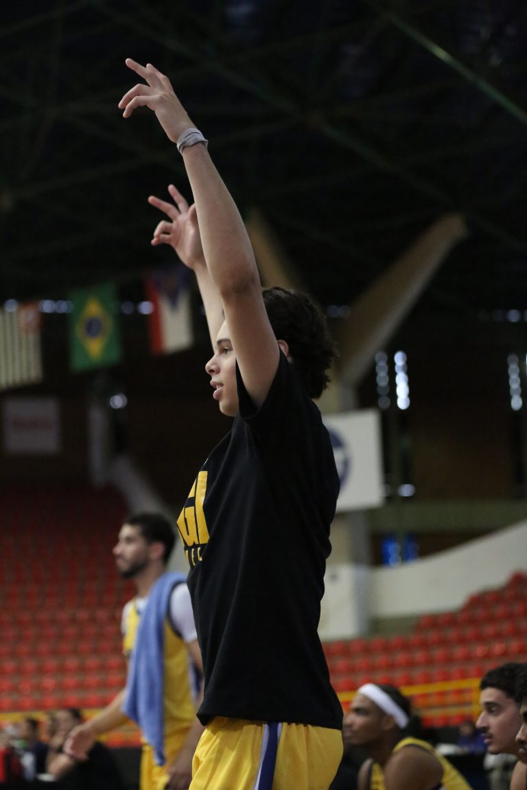 Gui acerta arremesso de dois pontos.