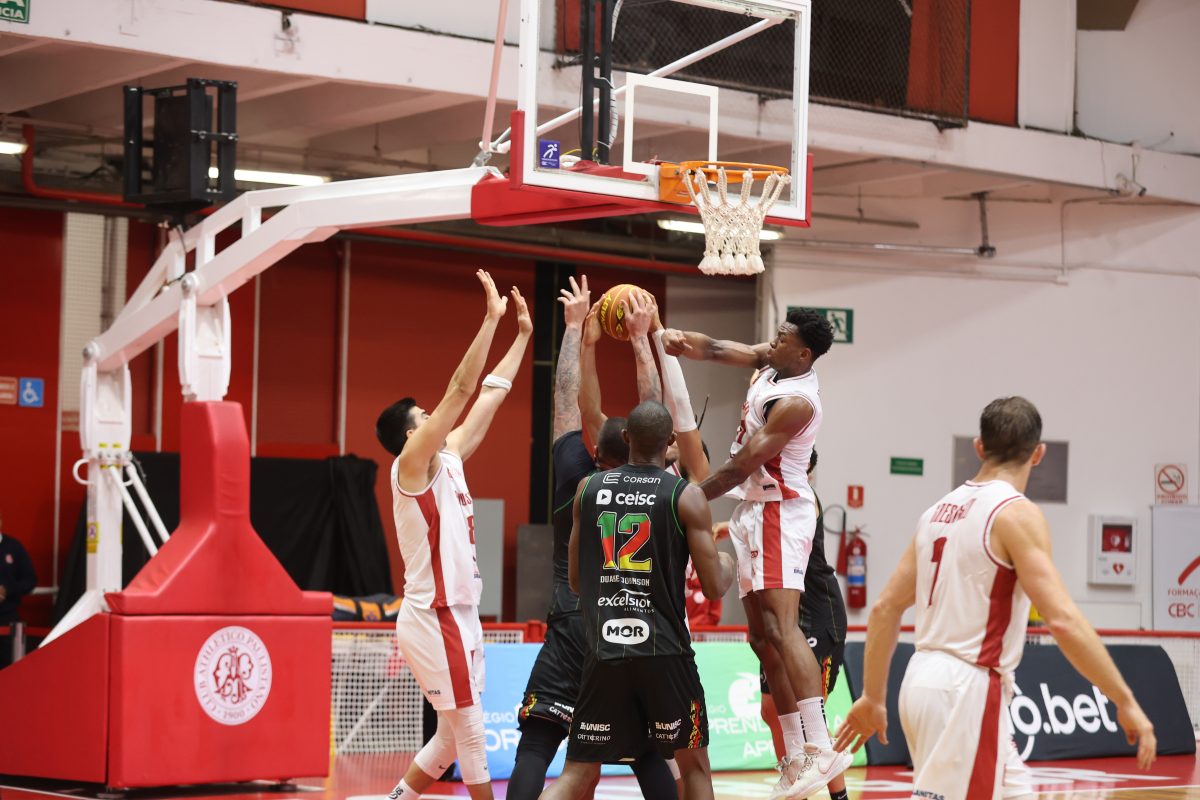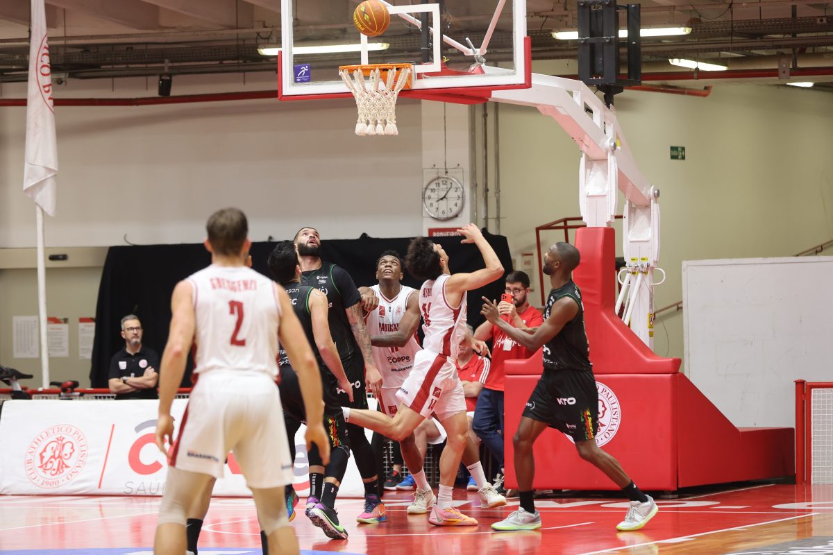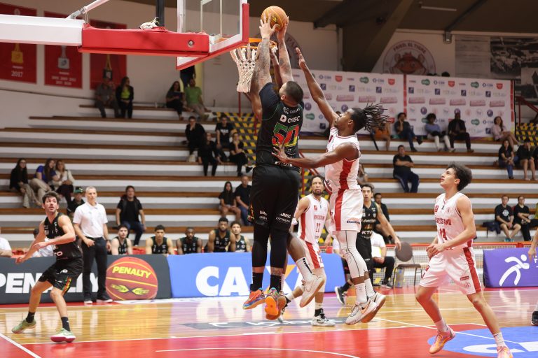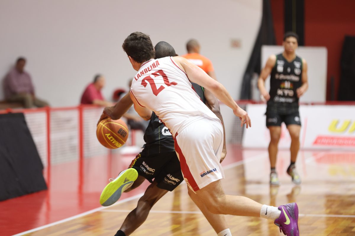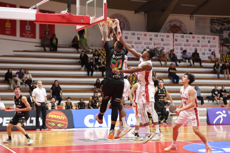 Brunão pega rebote defensivo.