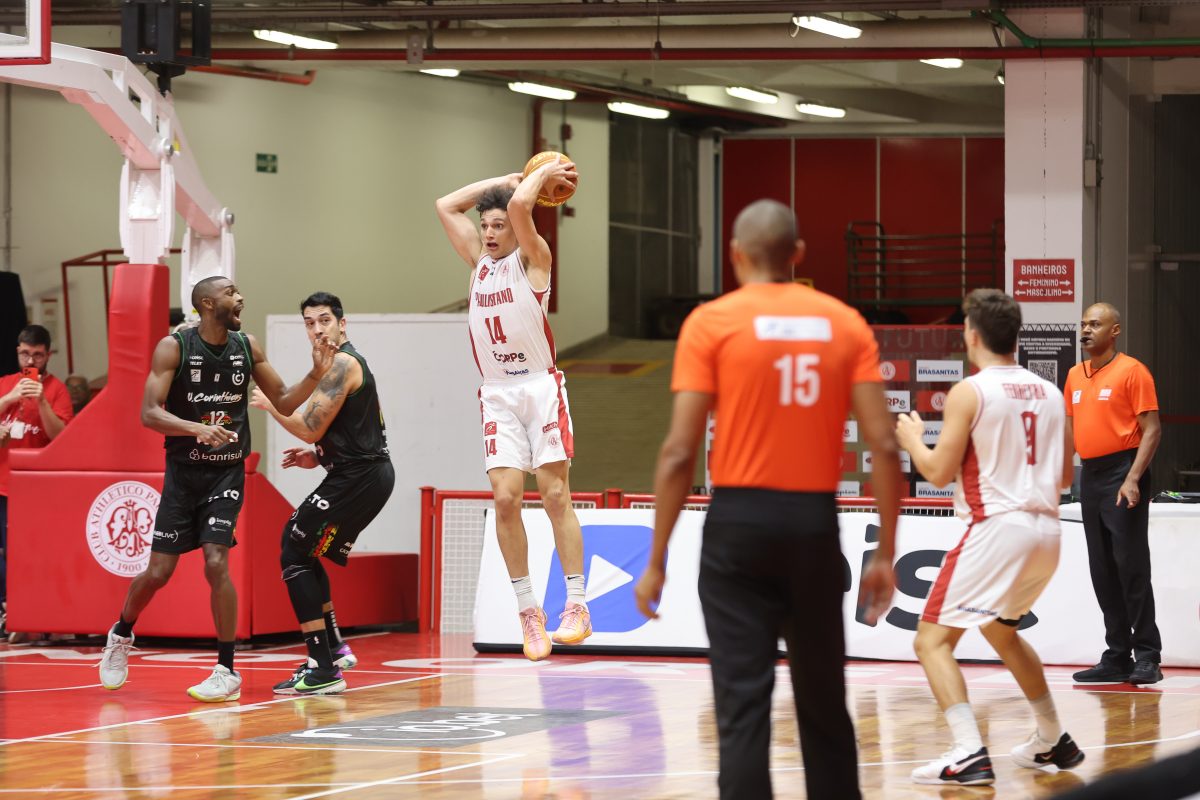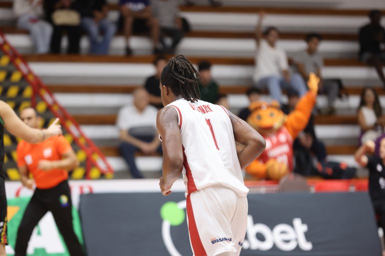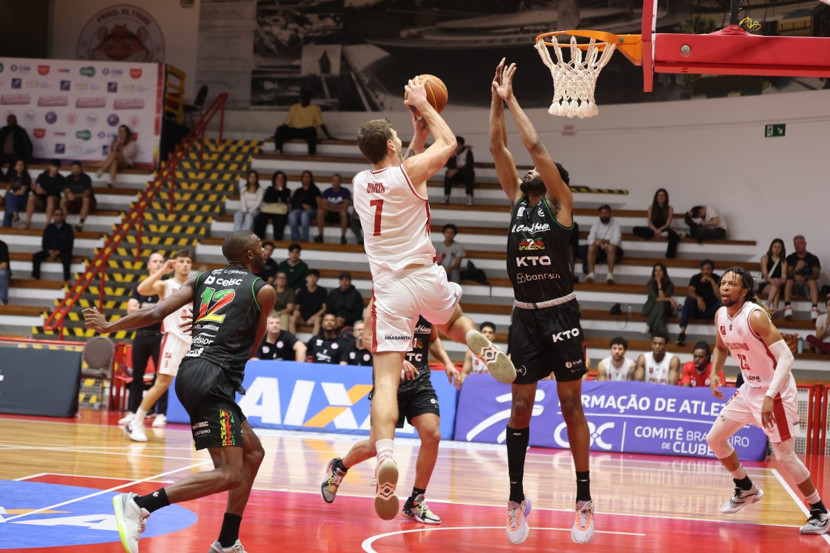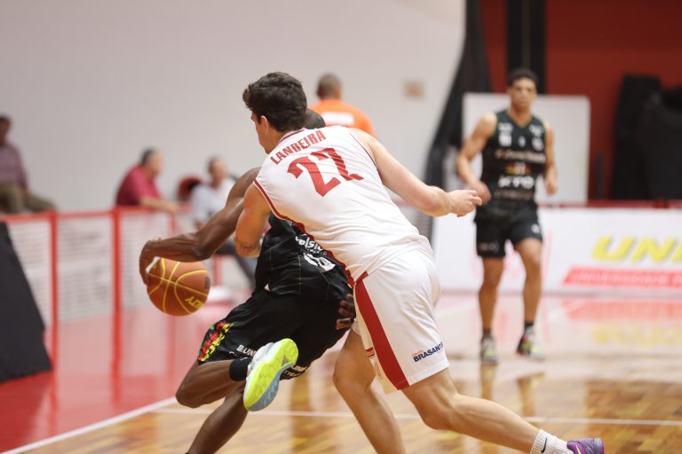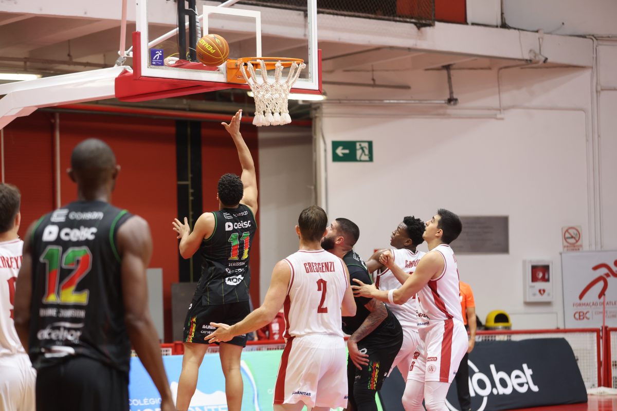 Brunão pega rebote defensivo.