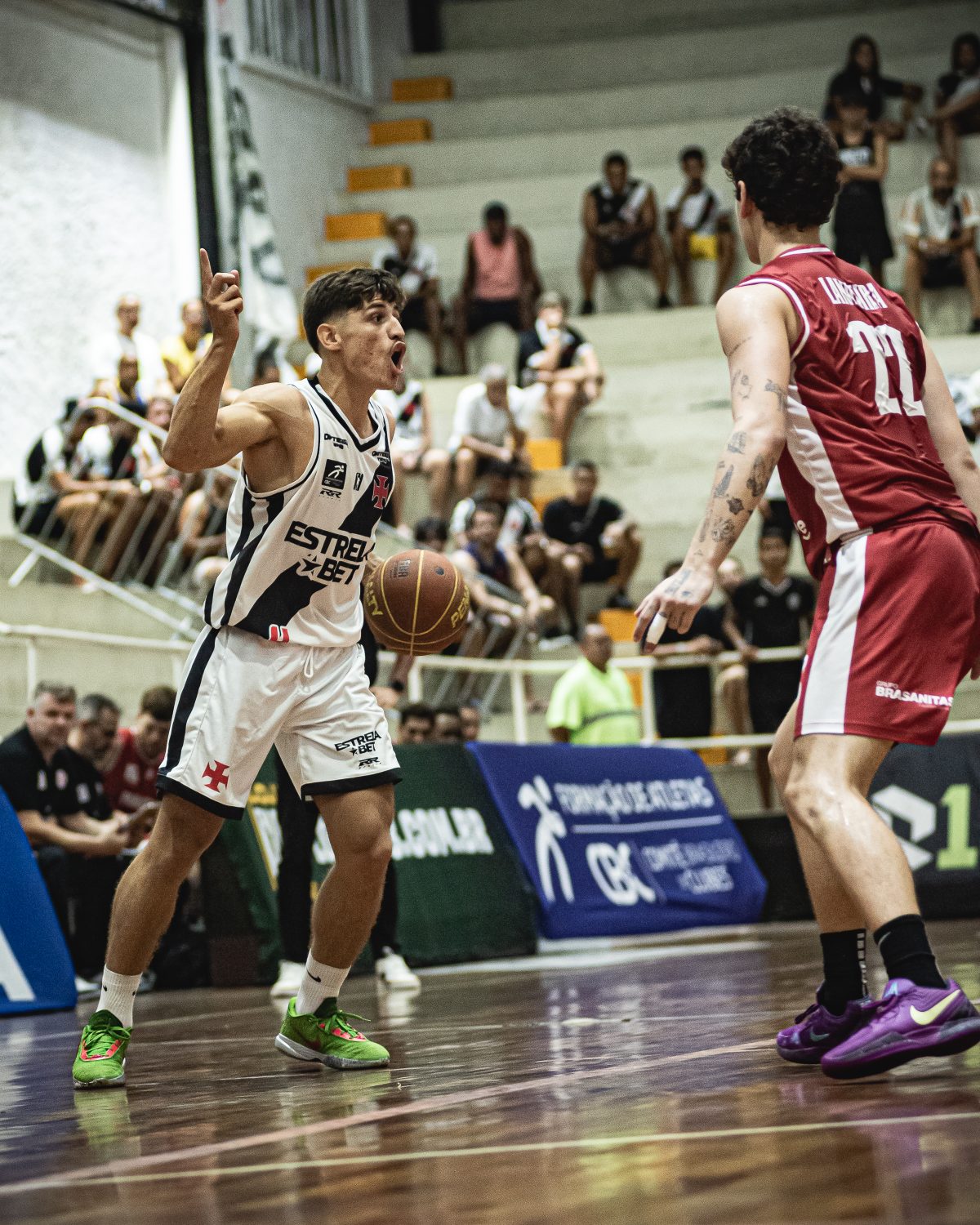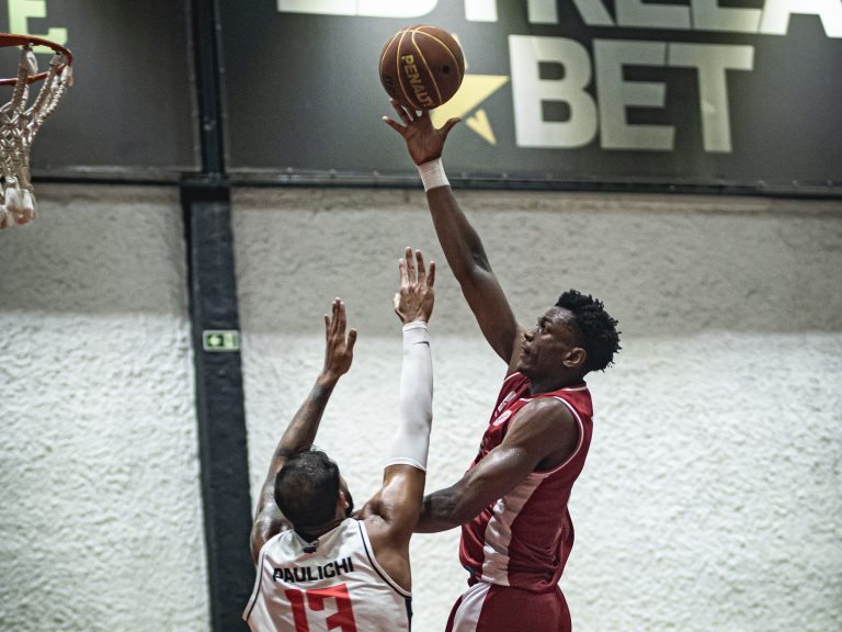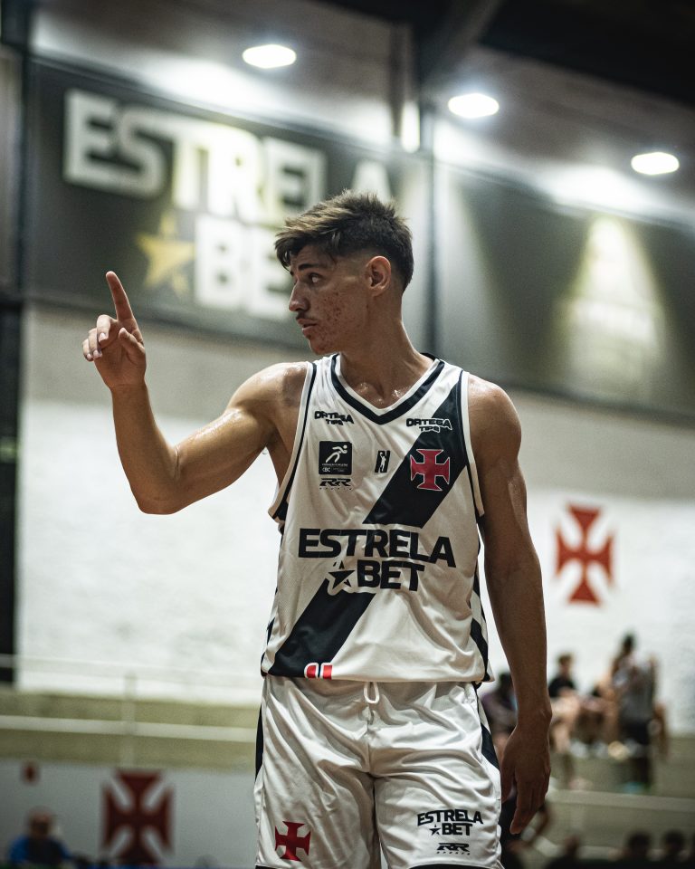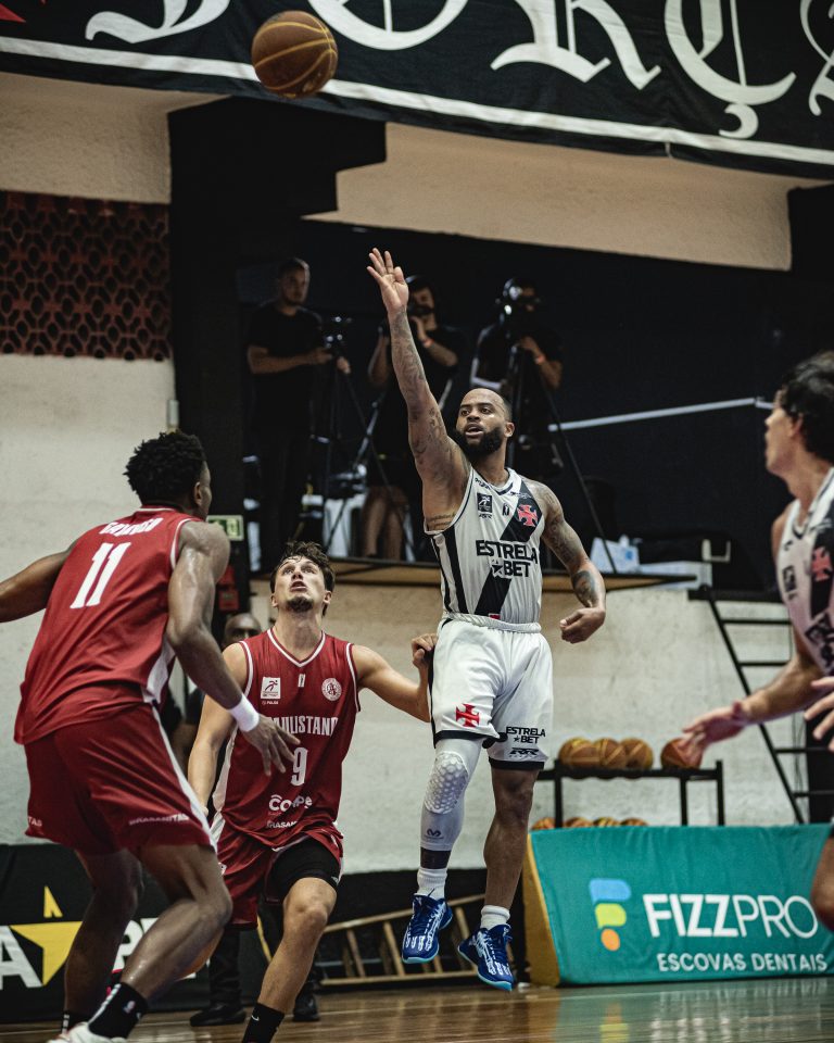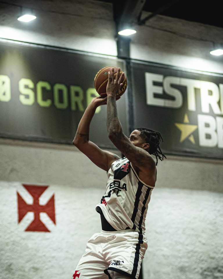 Vinícius acerta arremesso de dois pontos.