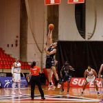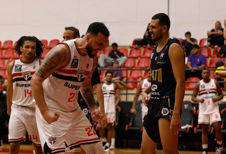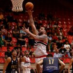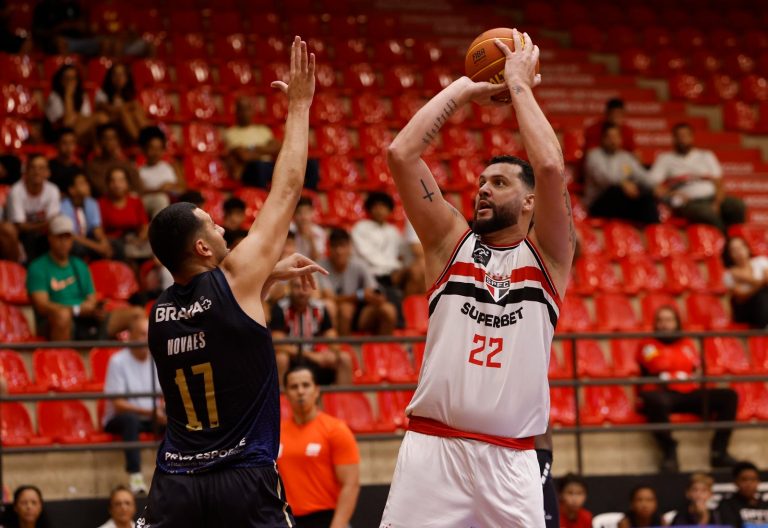 Góes acerta arremesso de dois pontos.