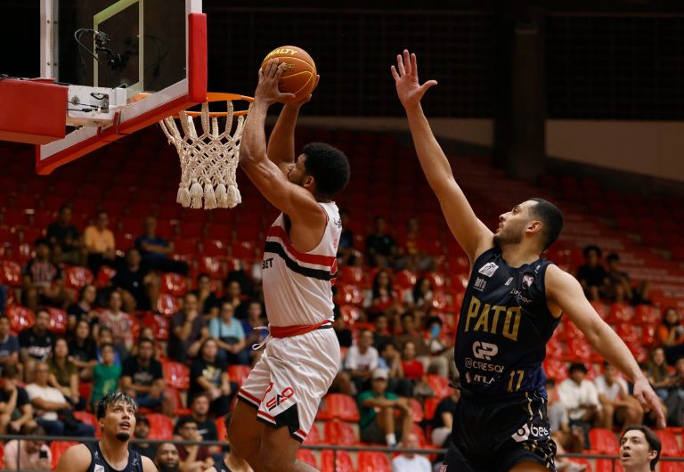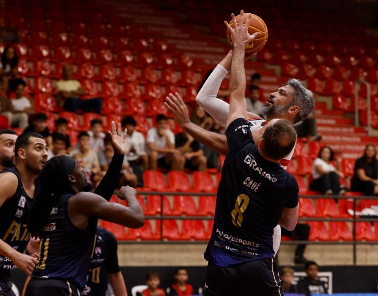 Paulo acerta arremesso de dois pontos.
