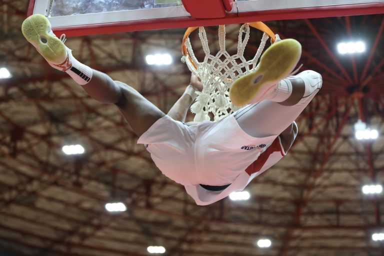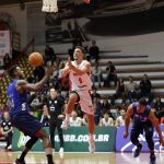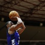 Hollowell acerta arremesso de dois pontos.
