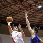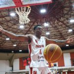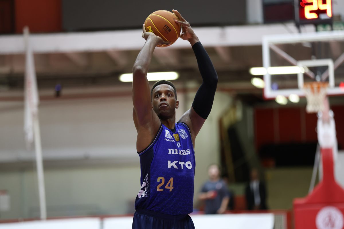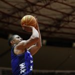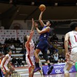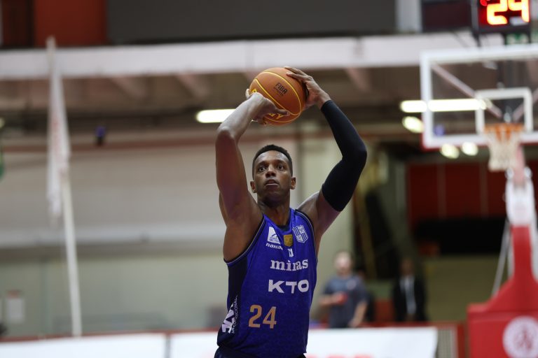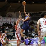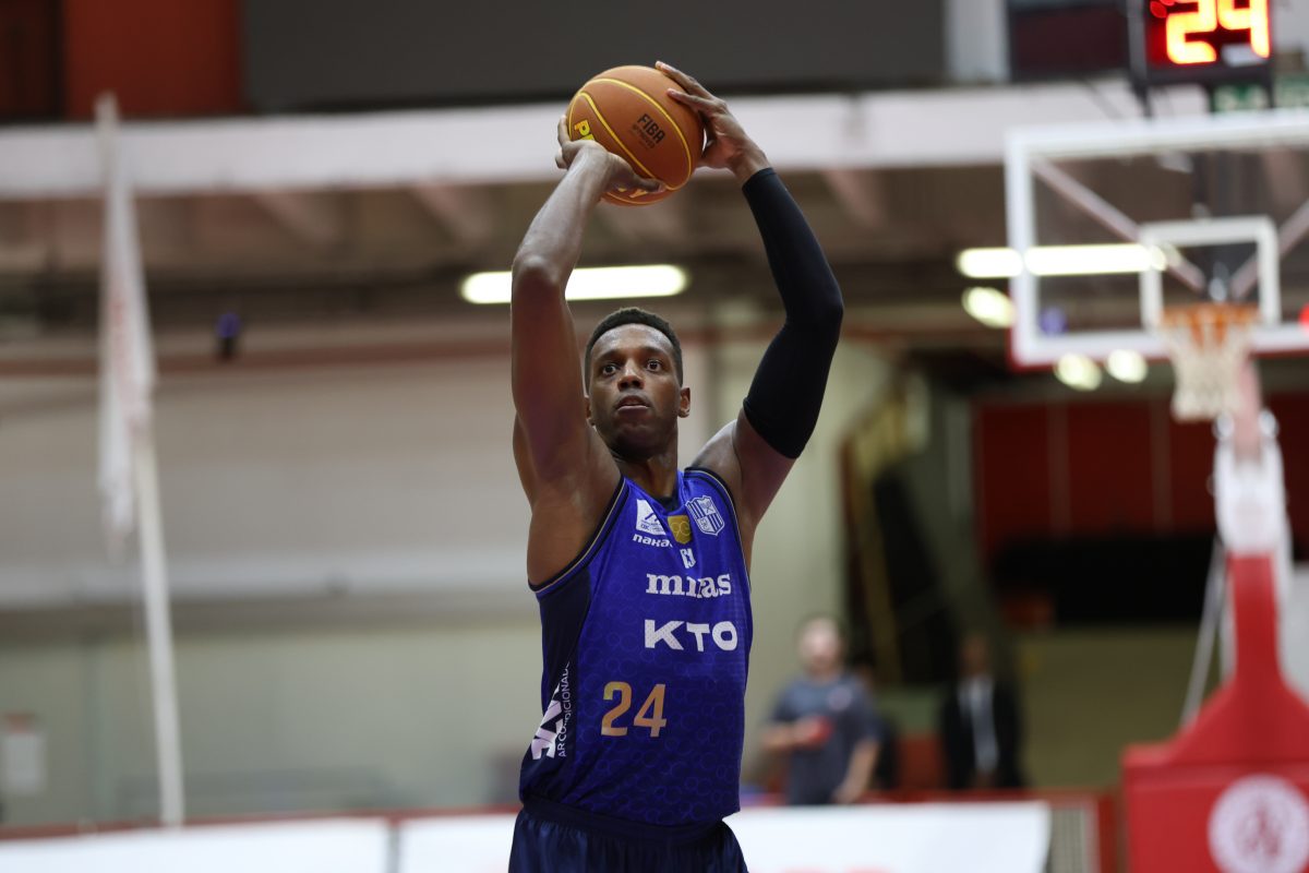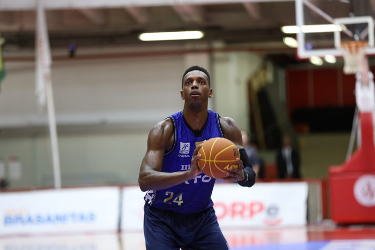 Leandro acerta arremesso de dois pontos.
