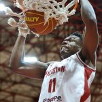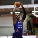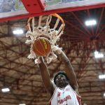 Landeira acerta arremesso de dois pontos.