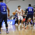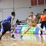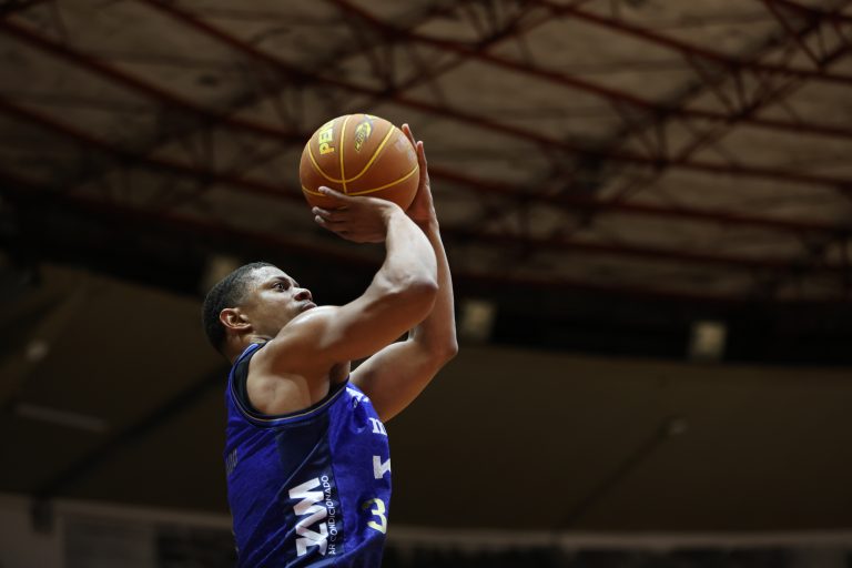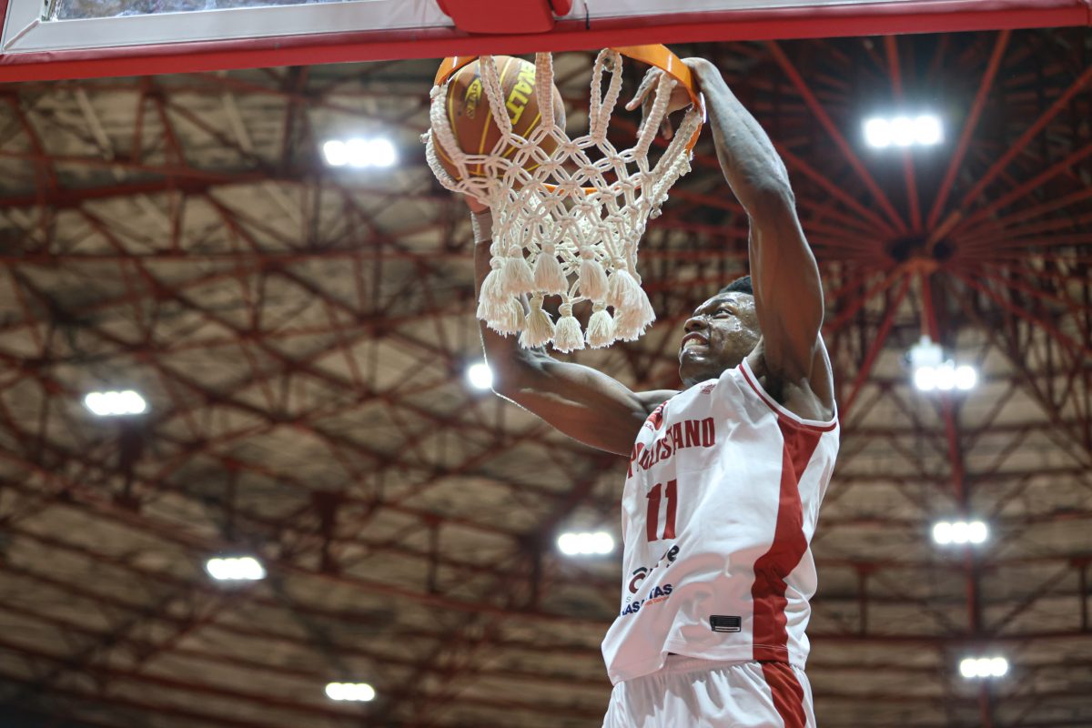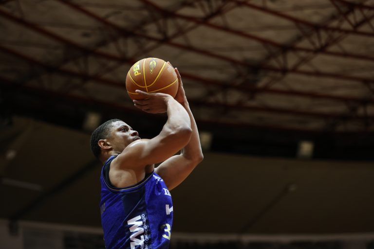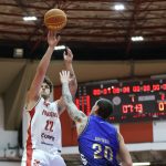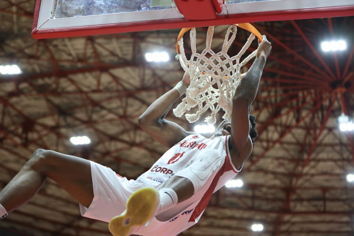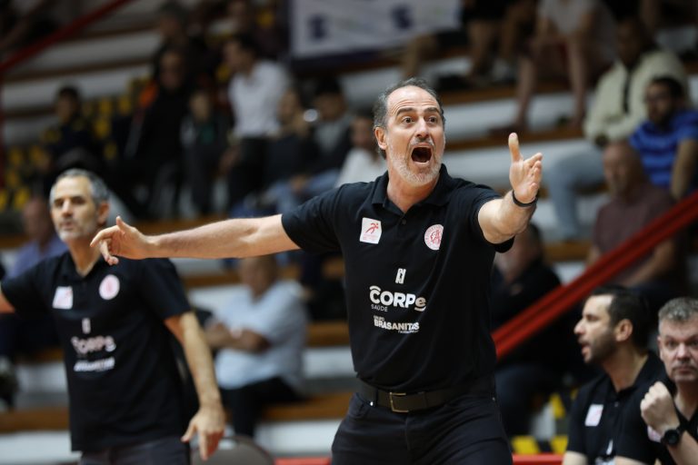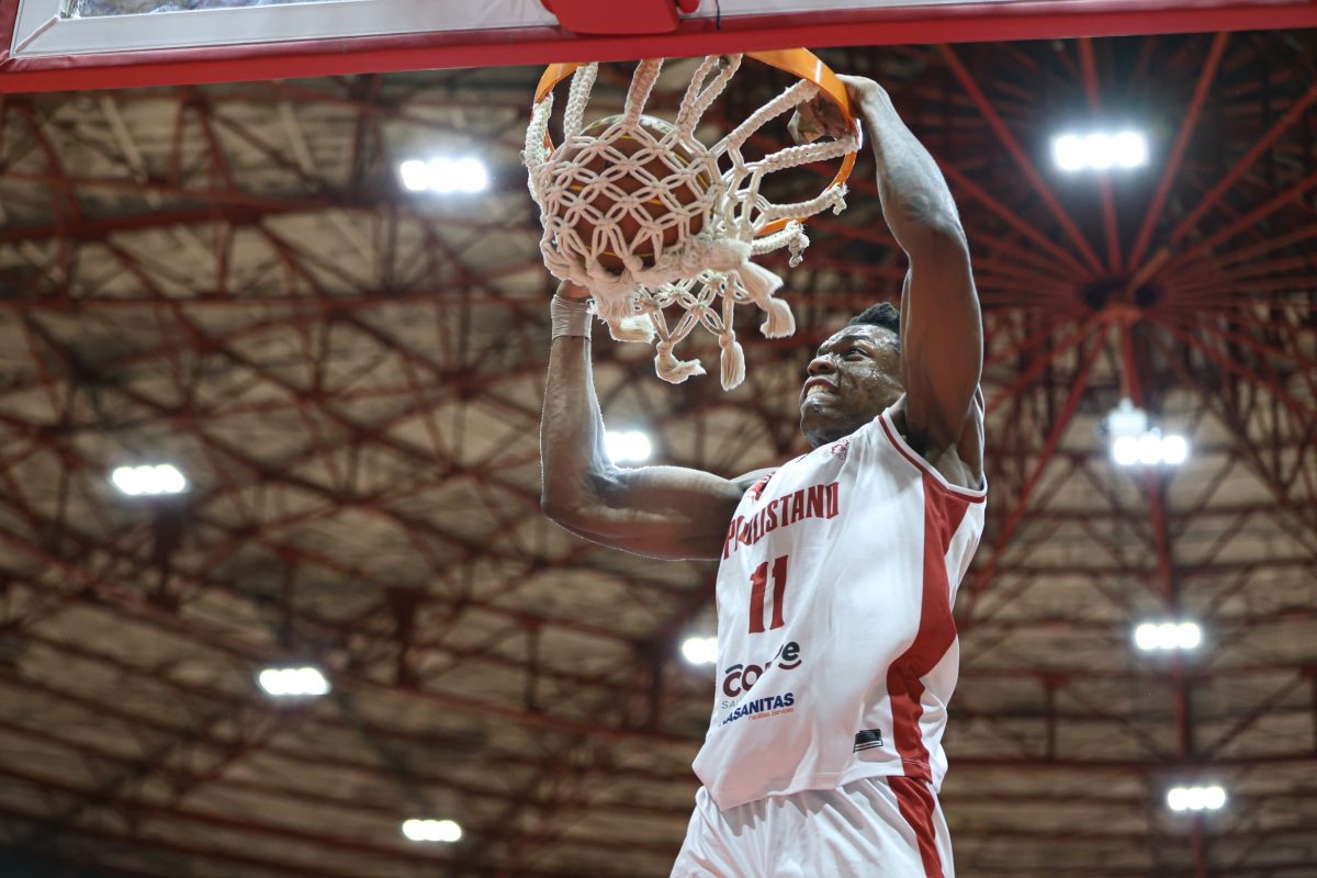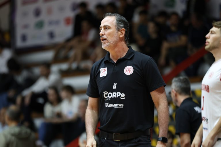 Leandro erra tentativa para três pontos.