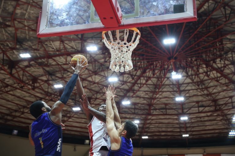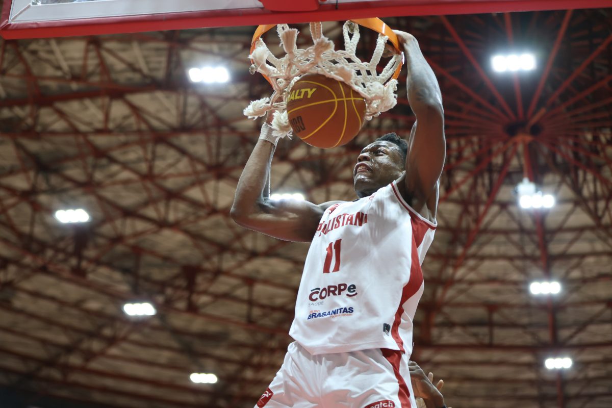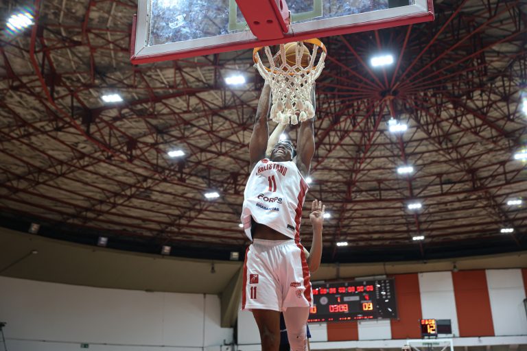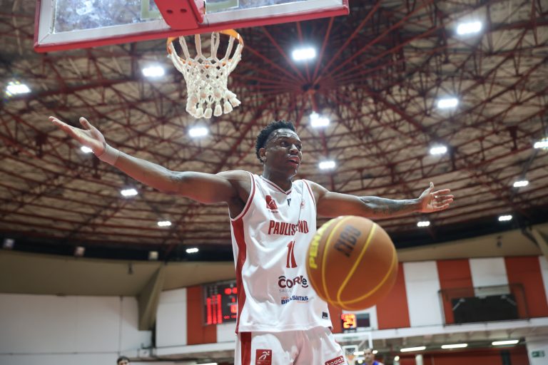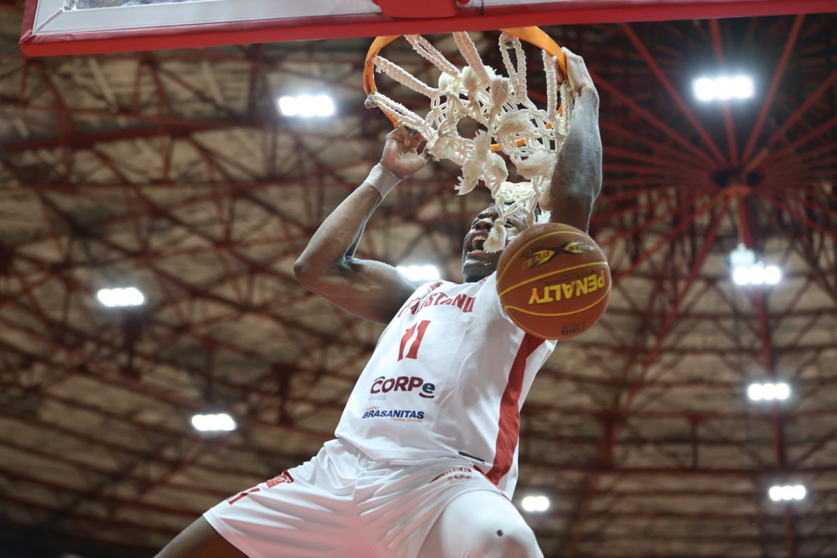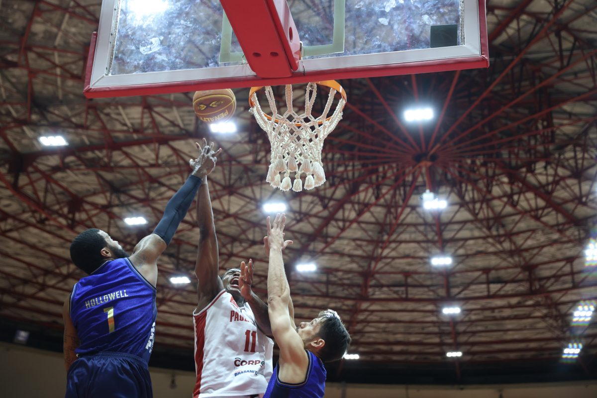 Brunão erra tentativa para três pontos.