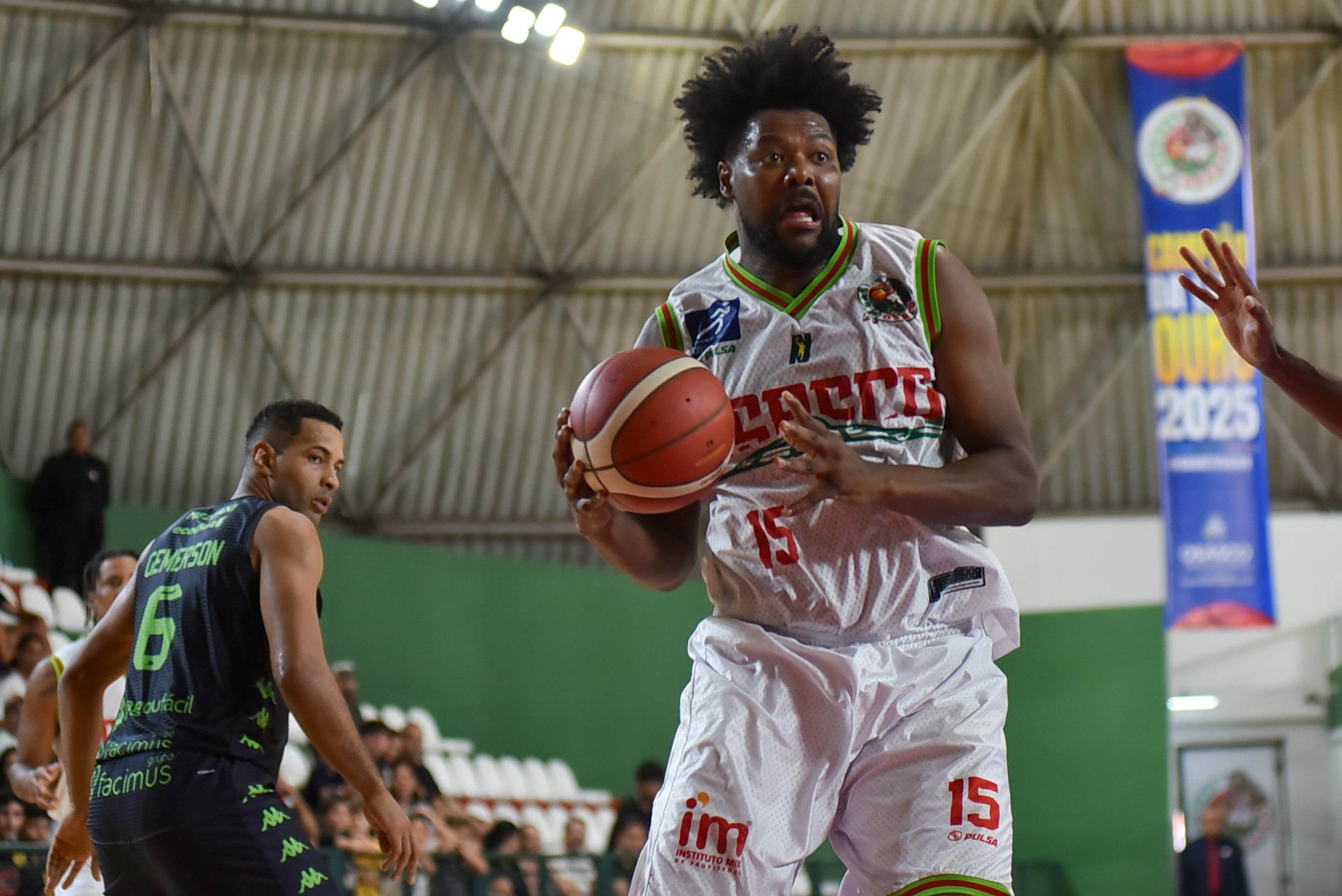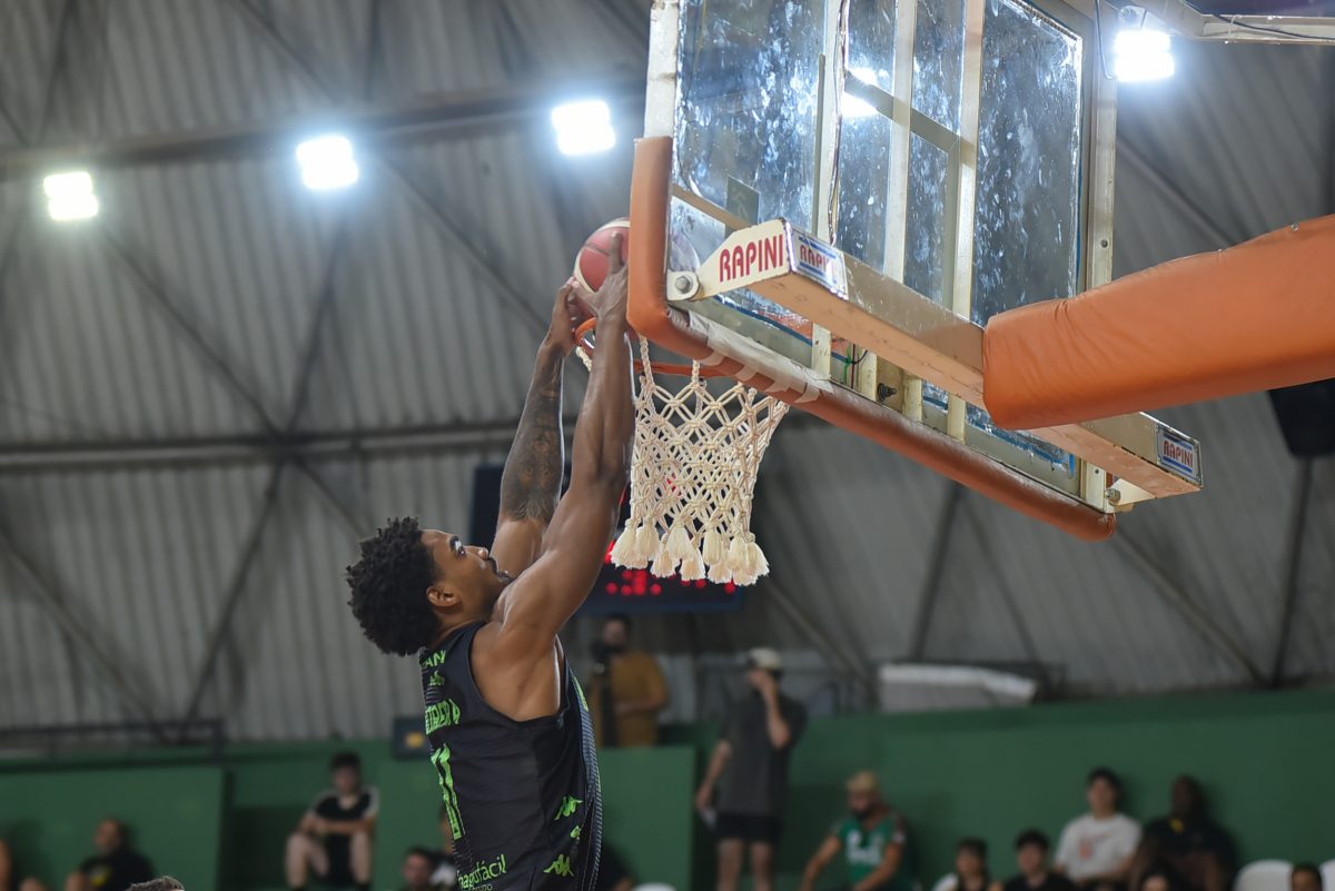 Vithinho pega rebote defensivo.