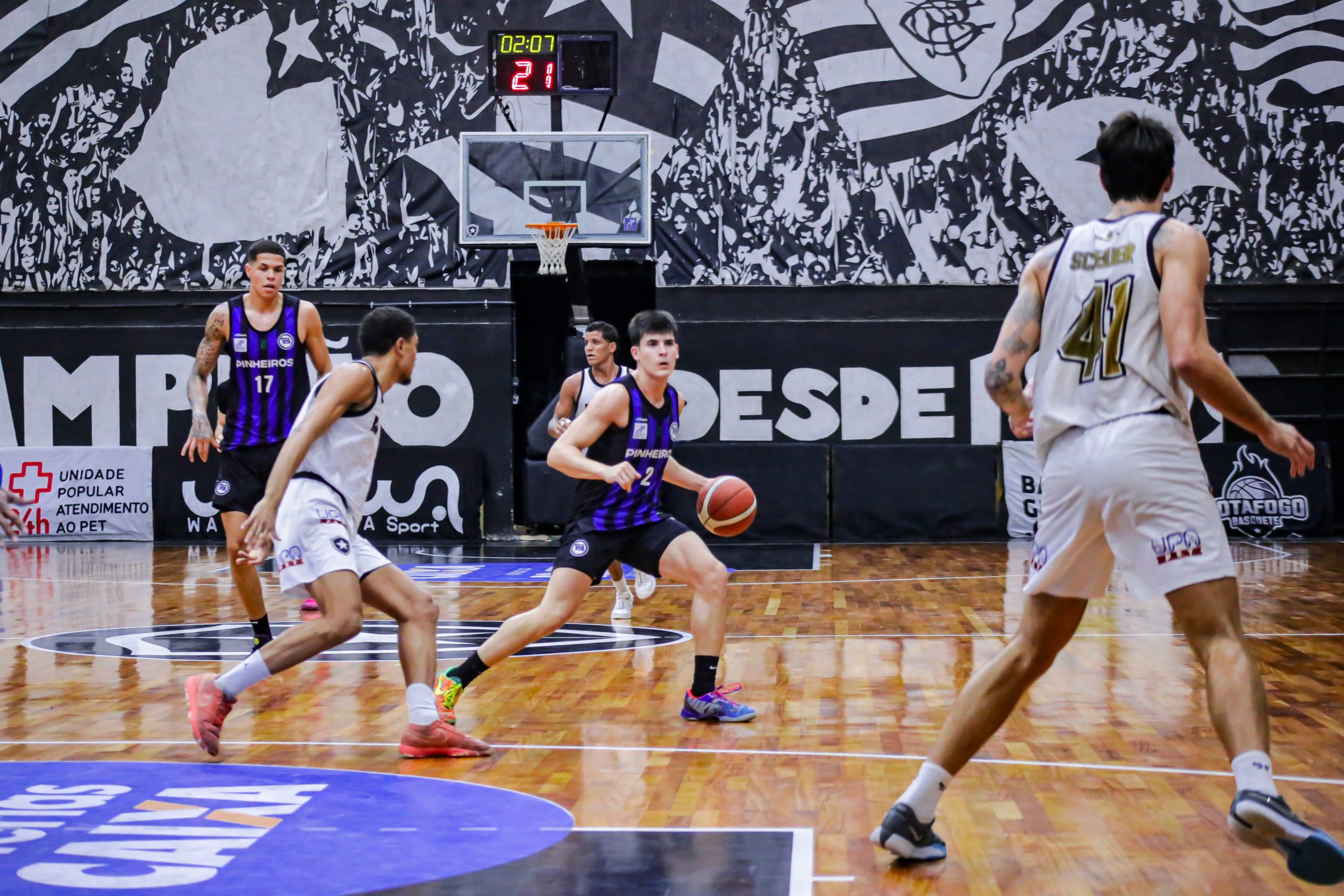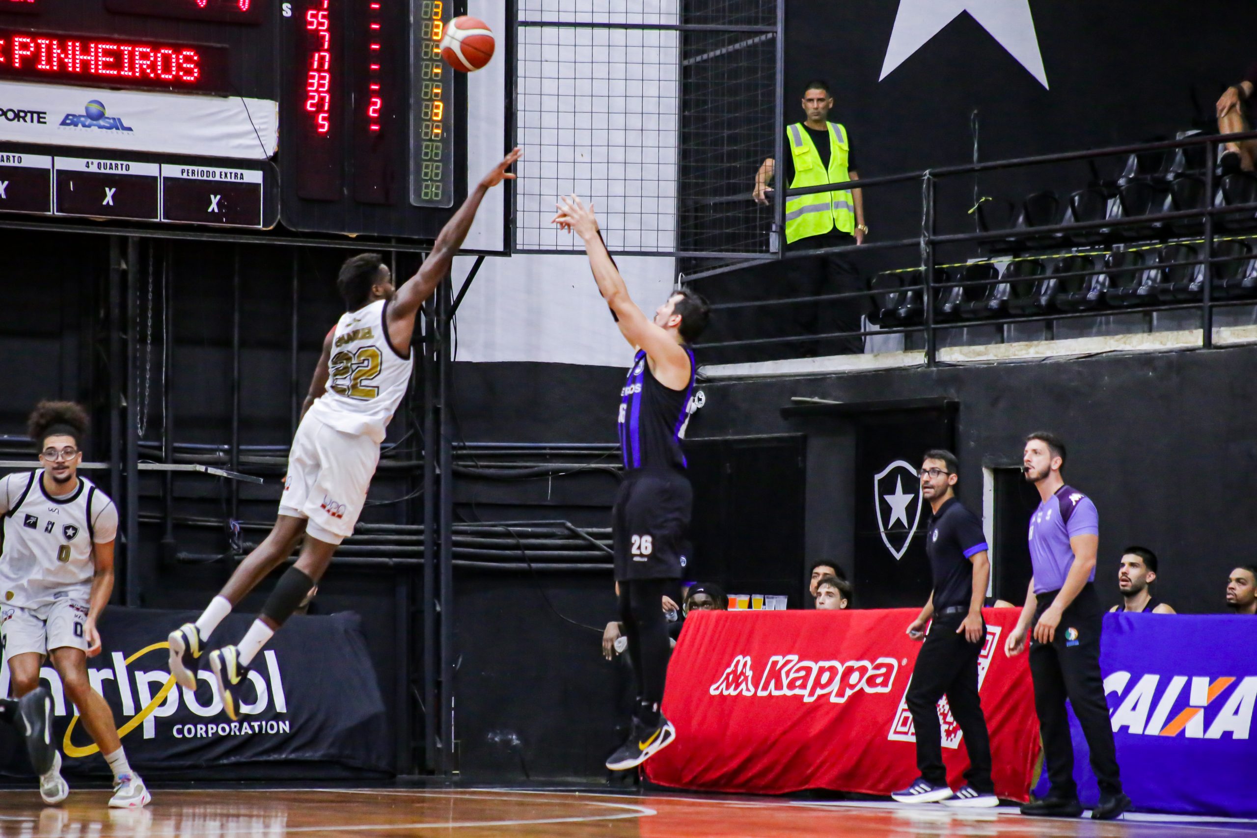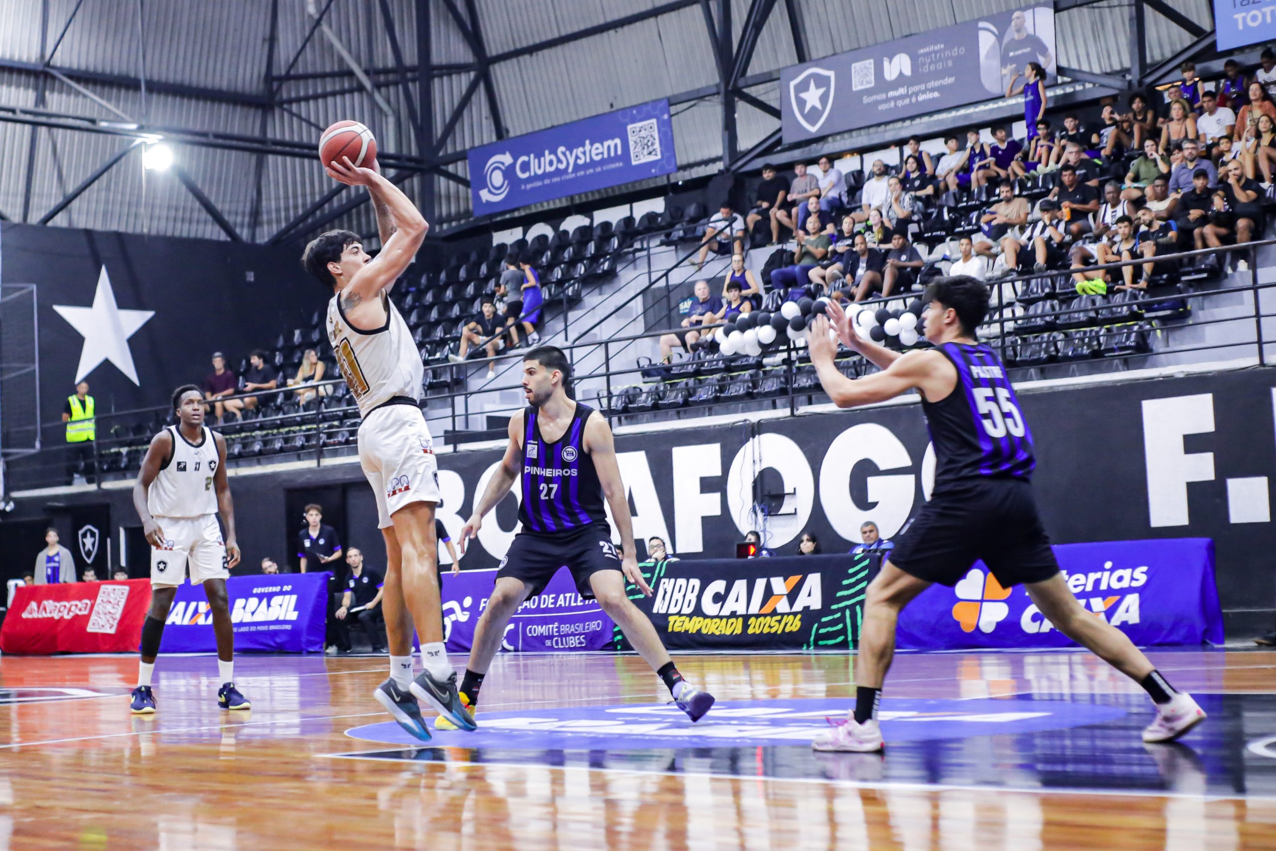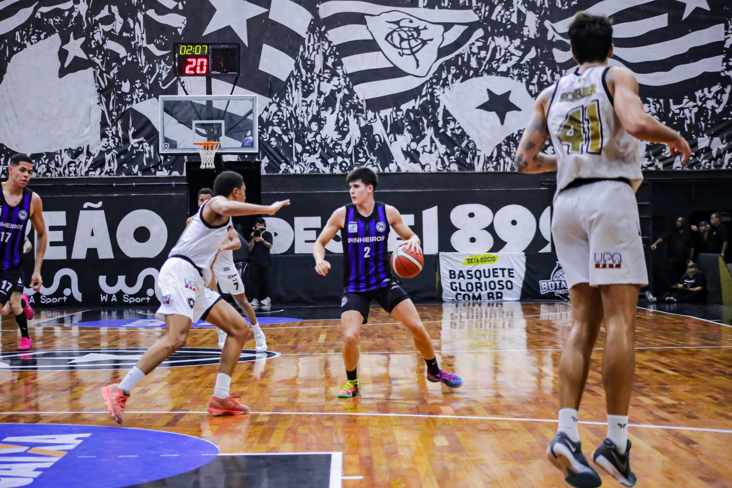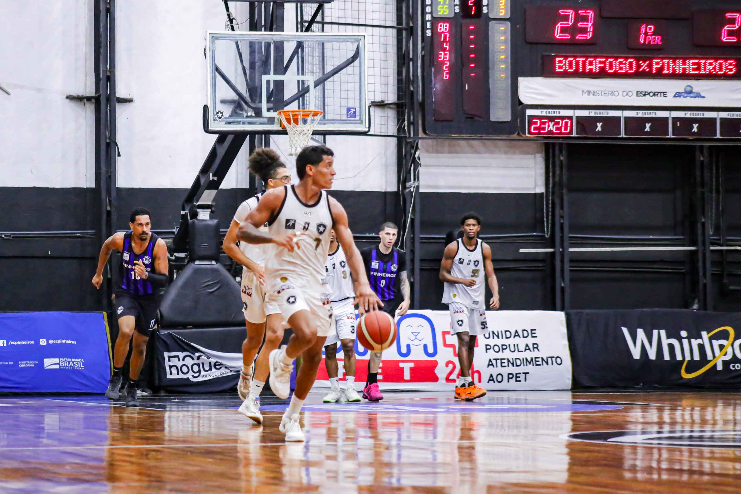 O Botafogo se impôs no primeiro período diante do líder Pinheiros. Com bom entendimento ofensivo, Scott Machado e Emanuel comandaram o ataque alvinegro, combinando para 16 pontos e ditando o ritmo da equipe na parcial. O time azul e preto respondeu com Edu Santos, jovem promissor de 16 anos, que saiu do banco e converteu duas bolas triplas, trazendo energia imediata. Mesmo assim, o Glorioso foi mais consistente nas posses e fechou o quarto inicial em vantagem: 25 a 20.