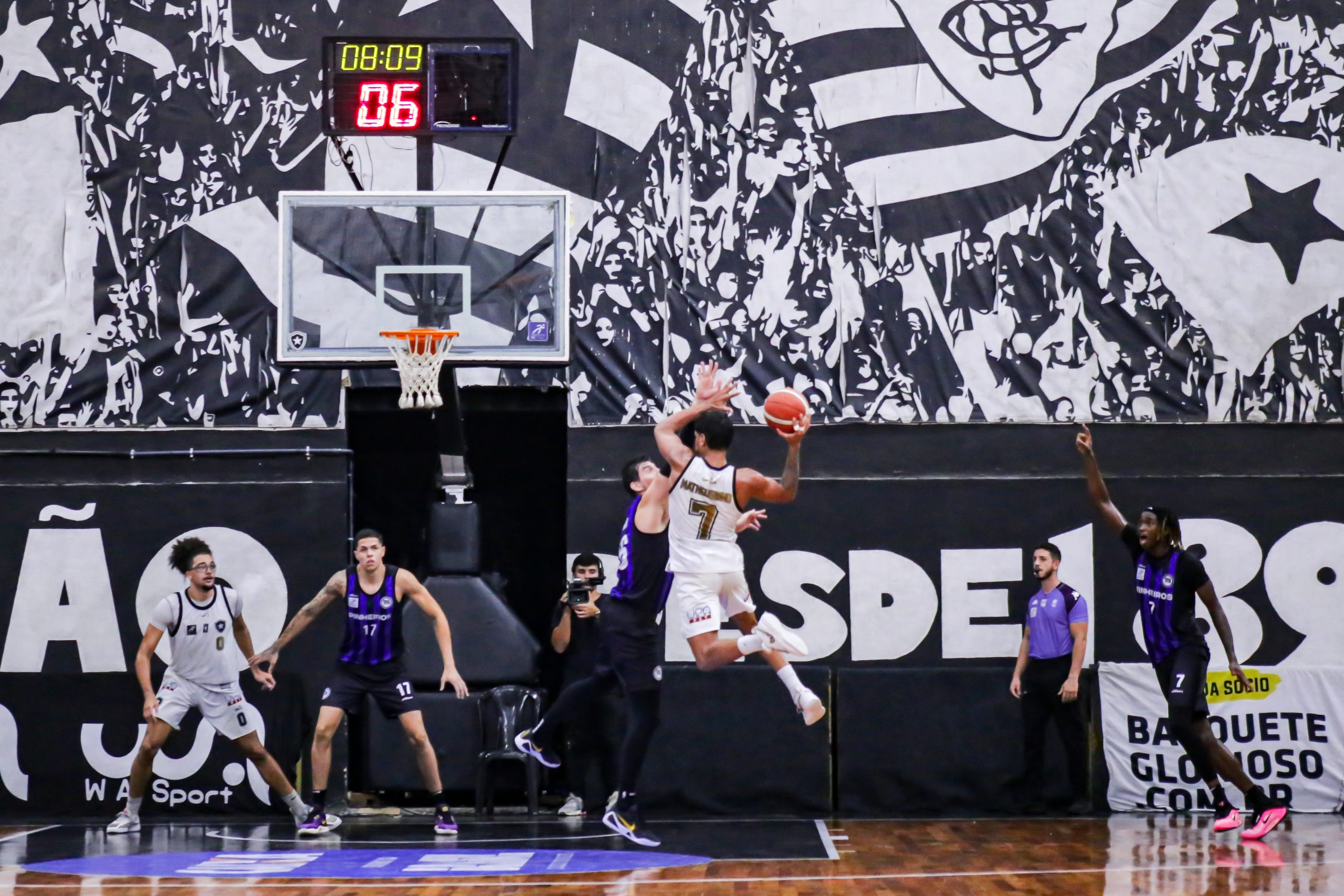 No segundo período, o Pinheiros voltou mais agressivo e conseguiu virar o placar logo nos primeiros minutos. O Botafogo reagiu com o brilho de Matheusinho, que estará no Jogo das Estrelas no Ibirapuera, sendo decisivo nos dois lados da quadra com intensidade defensiva e boas leituras no ataque. Ainda assim, a equipe azul e preta conseguiu ser ligeiramente superior na parcial, principalmente com eficiência nas bolas do perímetro, venceu o quarto por 19 a 17 e foi para o intervalo apenas três pontos atrás: 42 a 39.
