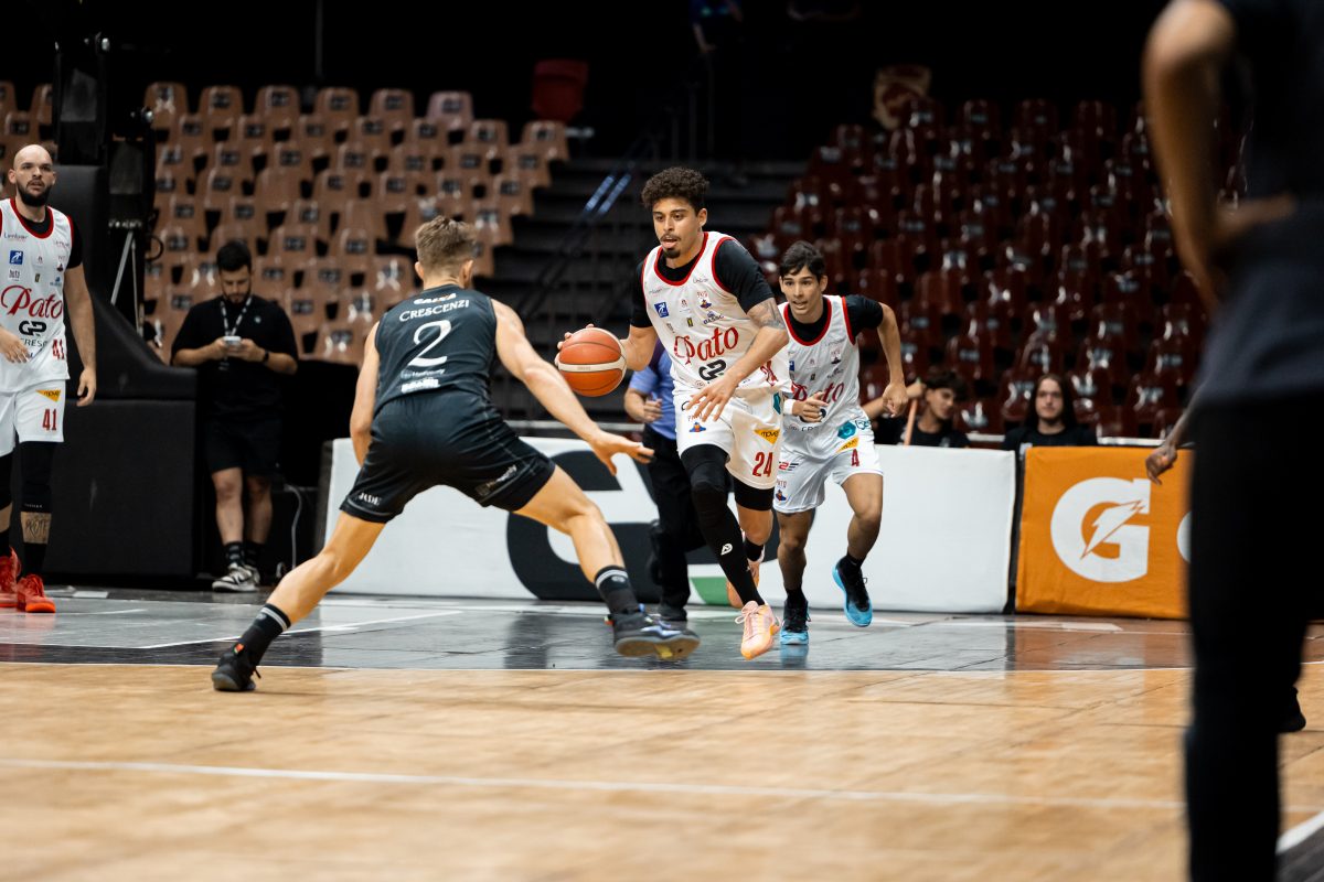 Lucas acerta arremesso de dois pontos.