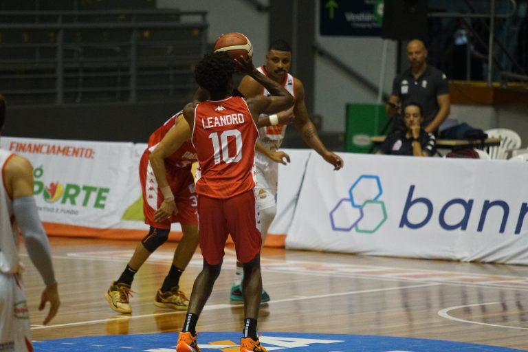 Leandro acerta arremesso de dois pontos.
