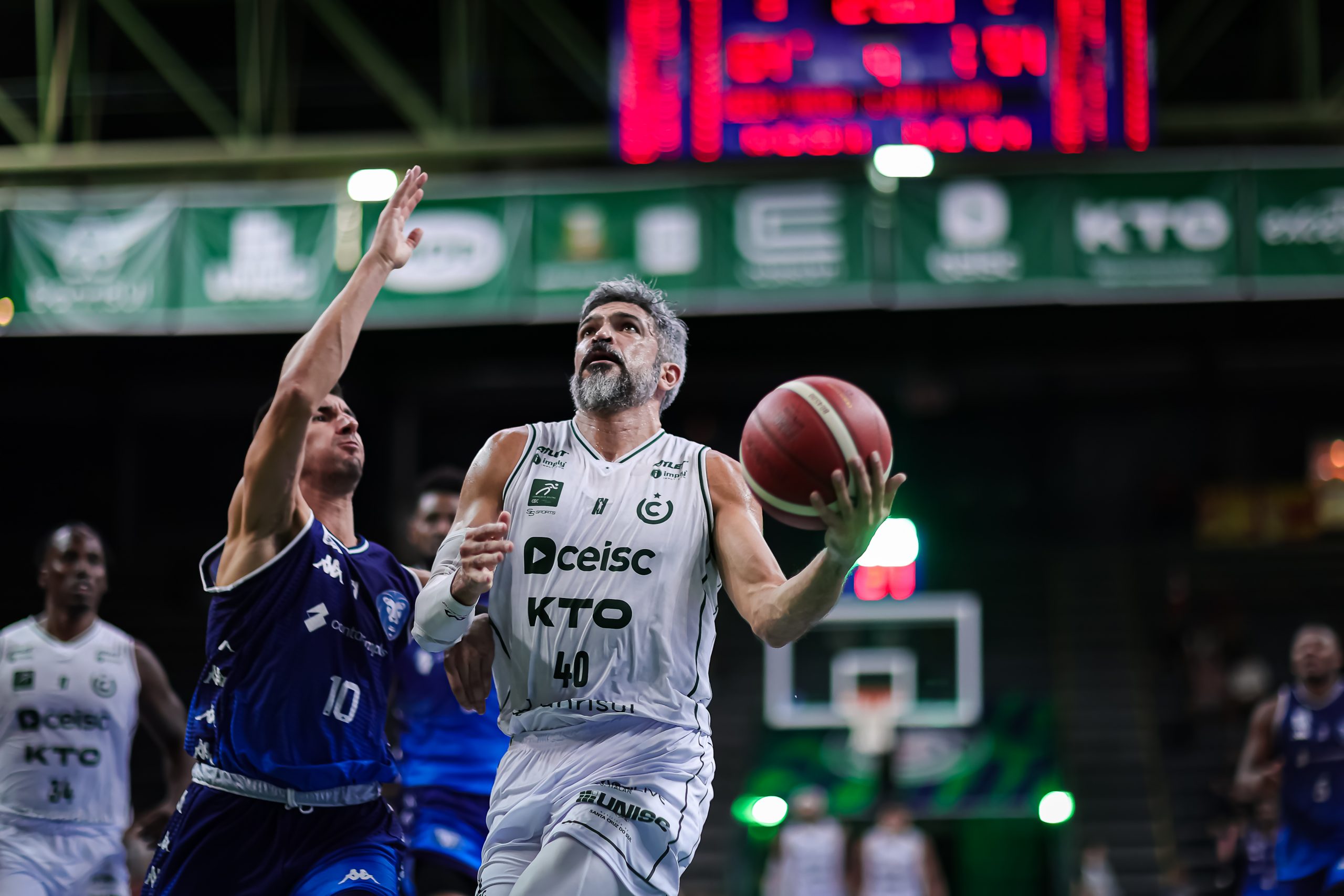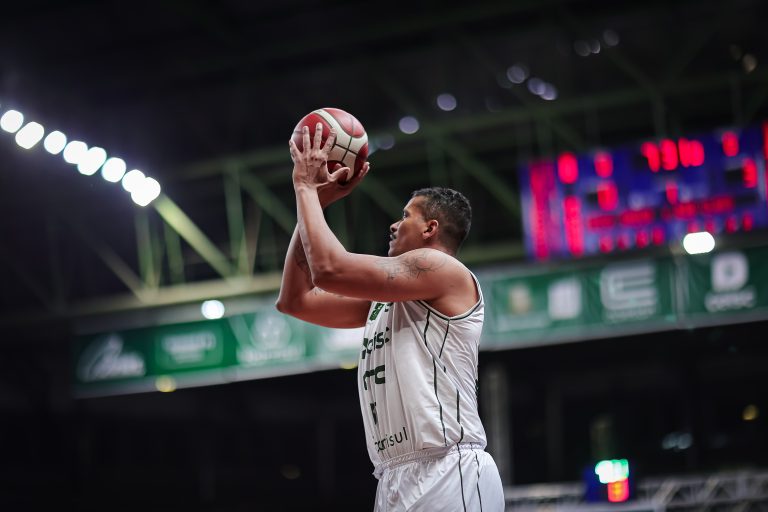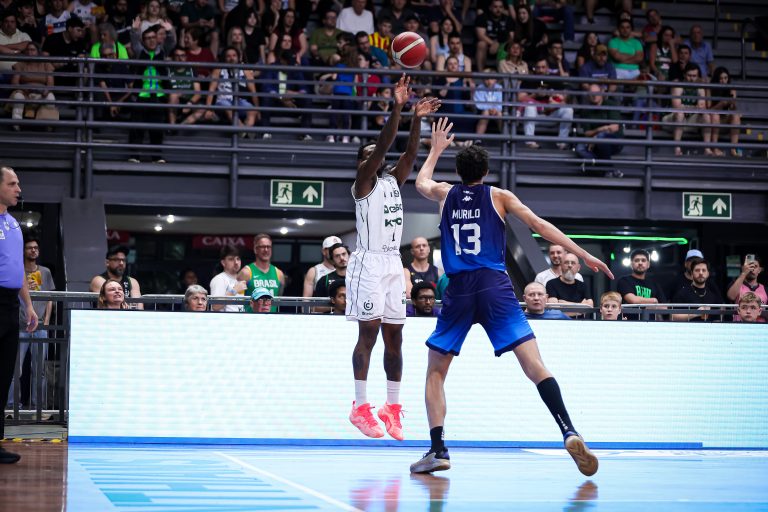 Vitor acerta arremesso de dois pontos.