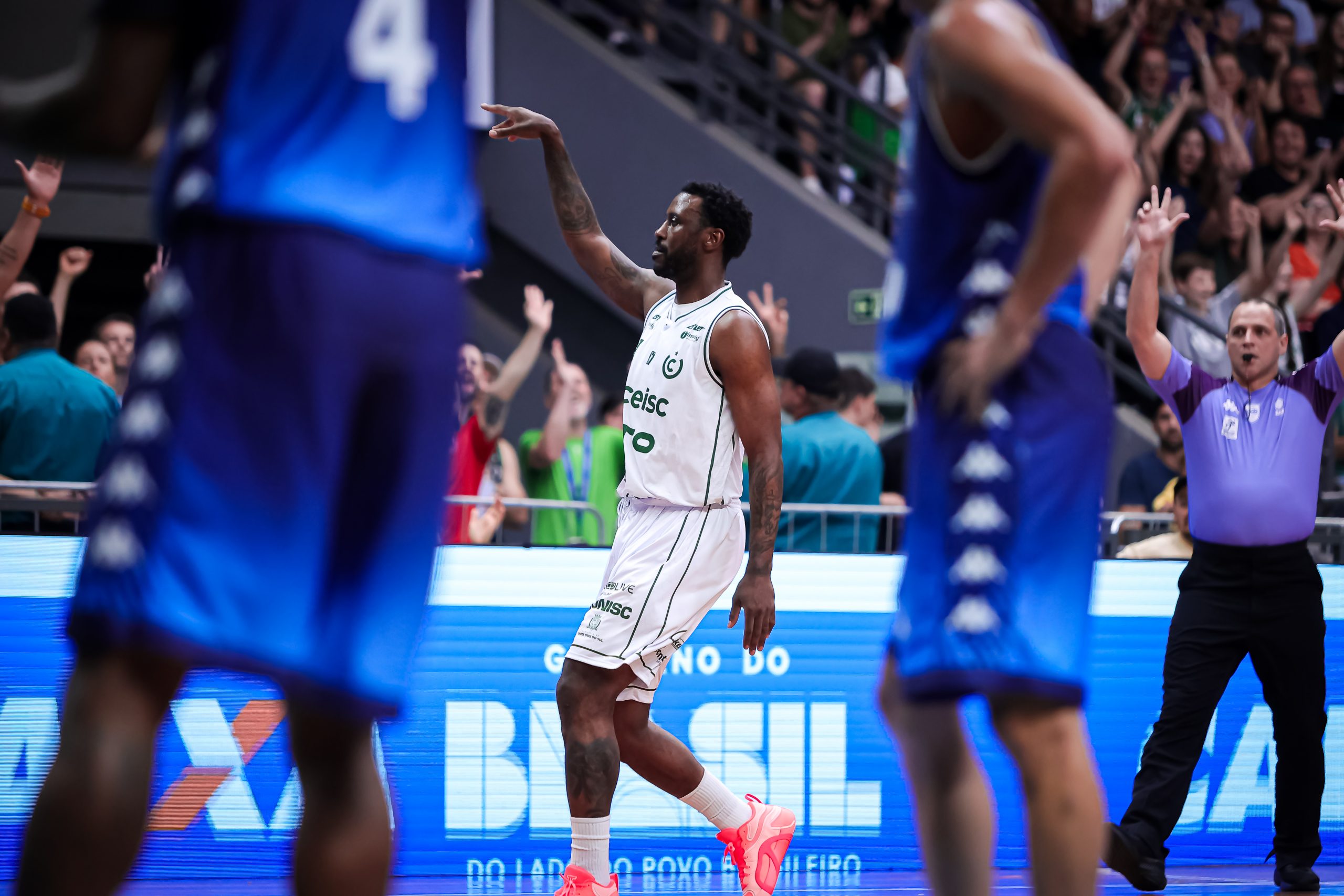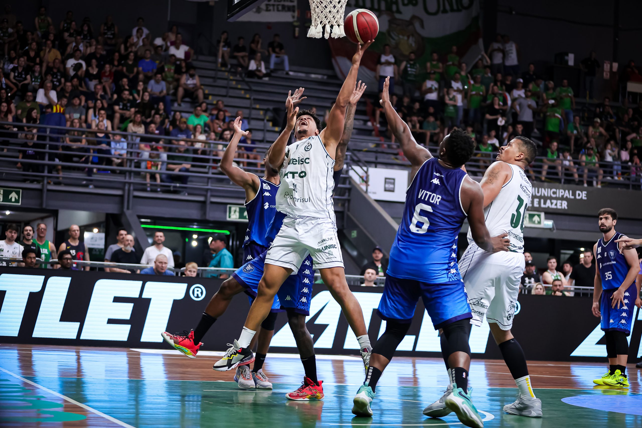 É de três! Vitor acerta arremesso de três pontos.