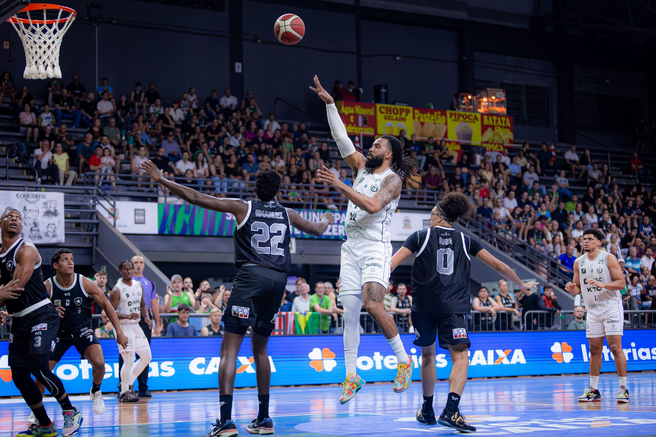 Natã acerta arremesso de dois pontos.