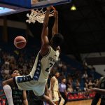 Hollowell pega rebote ofensivo.