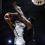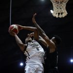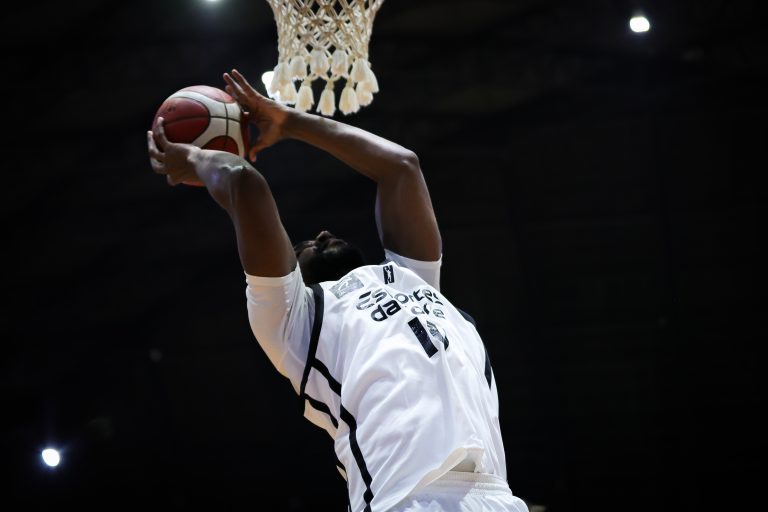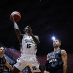 Lucas acerta arremesso de dois pontos.