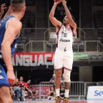 É de três! Alexey acerta arremesso de três pontos.