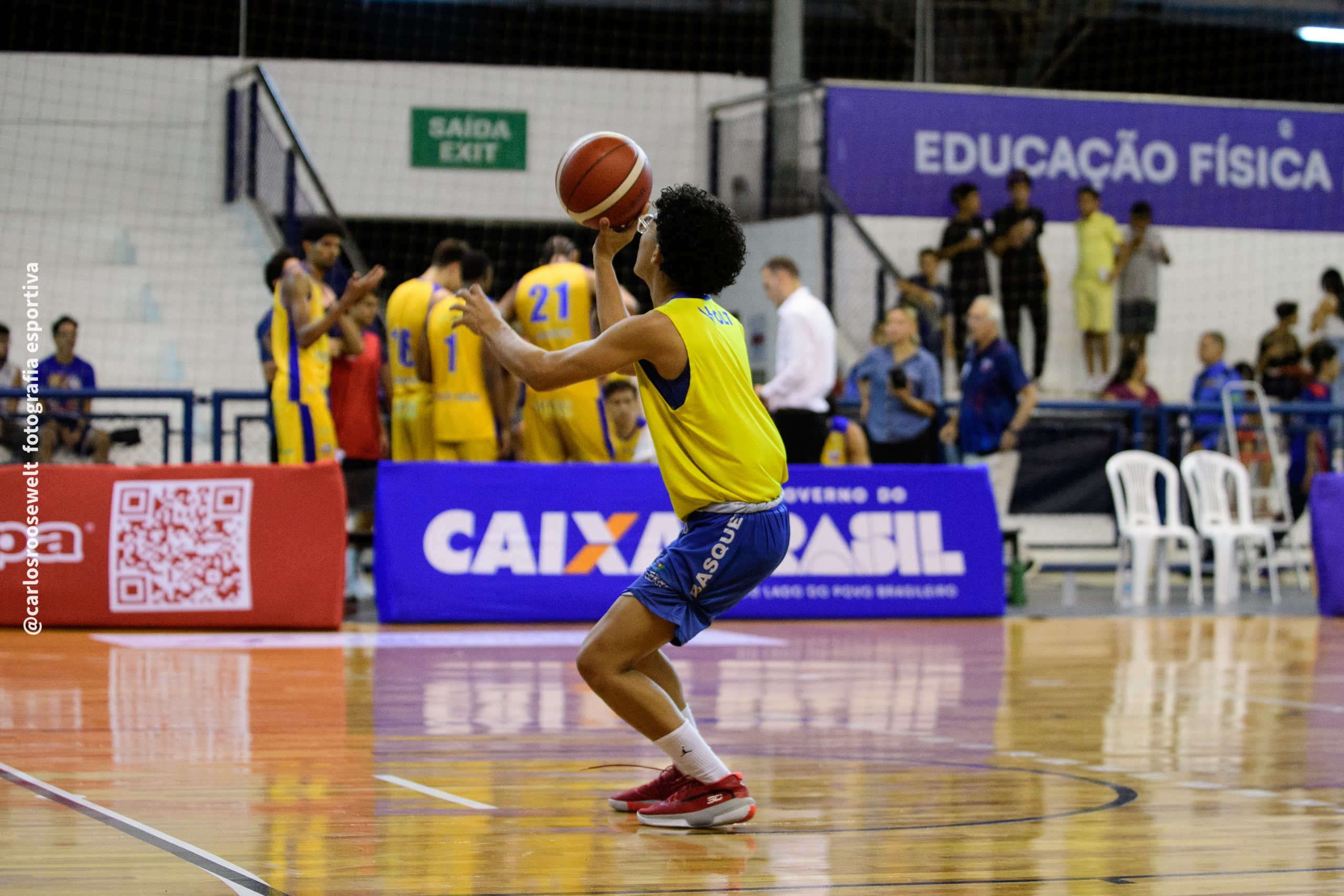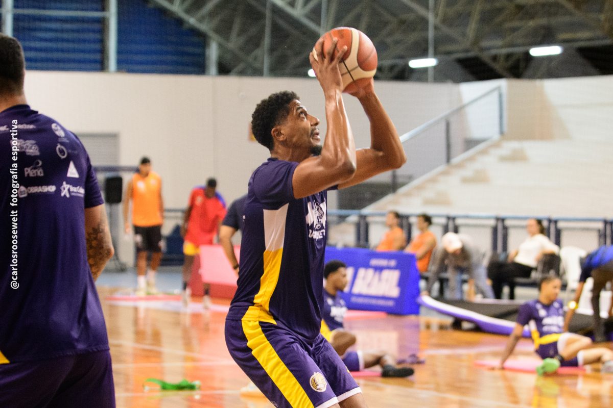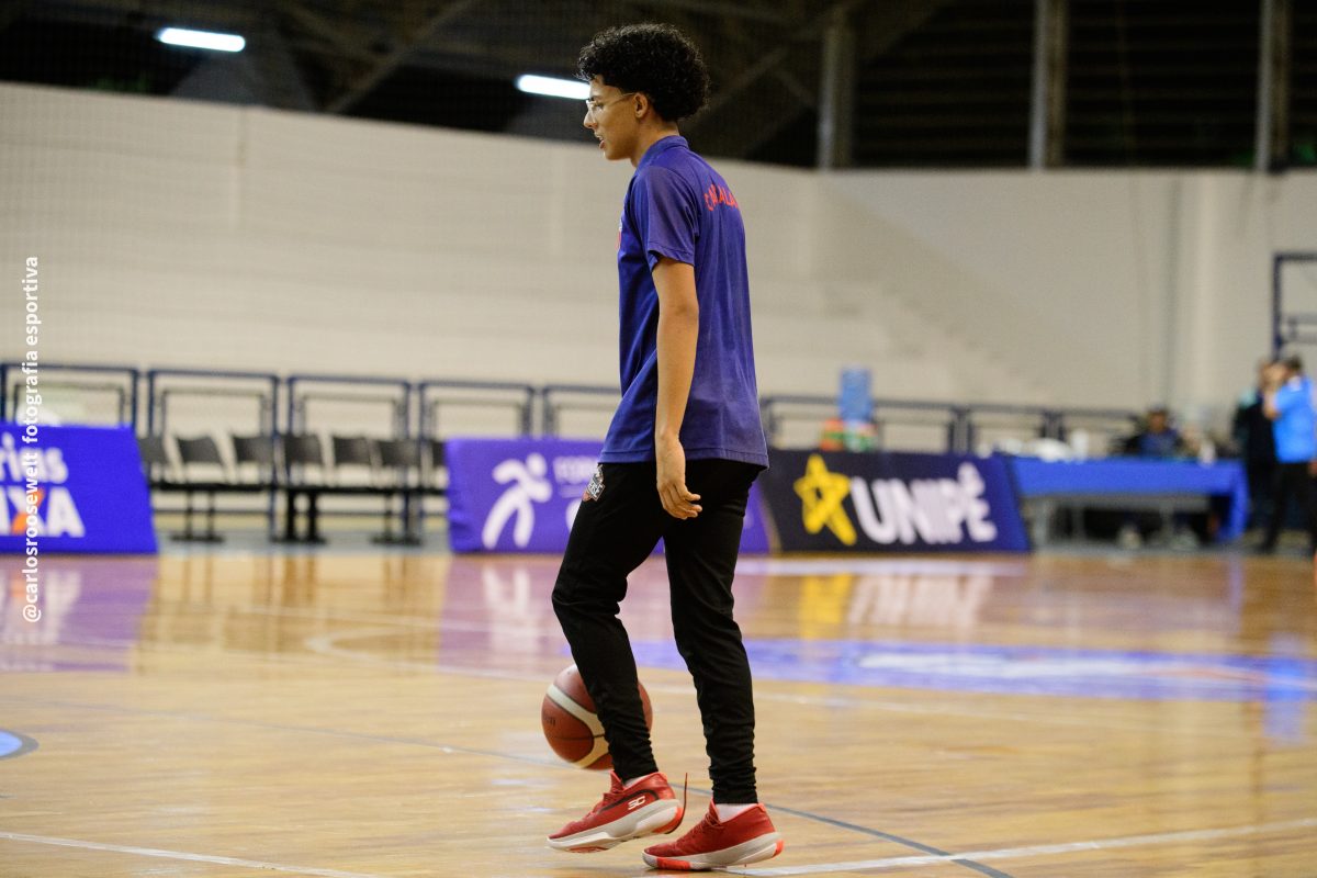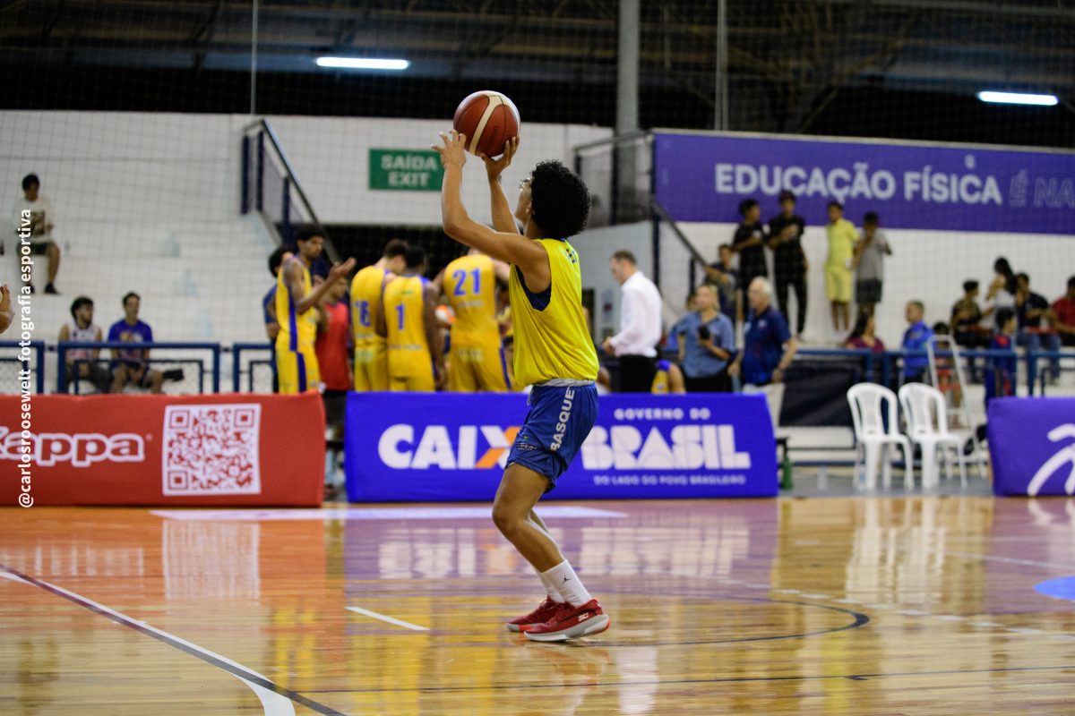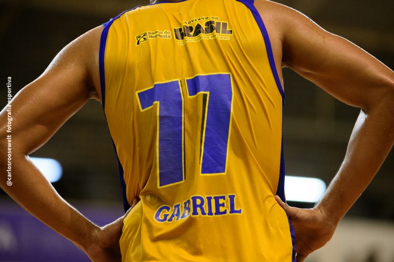 É de três! Gabriel acerta arremesso de três pontos.