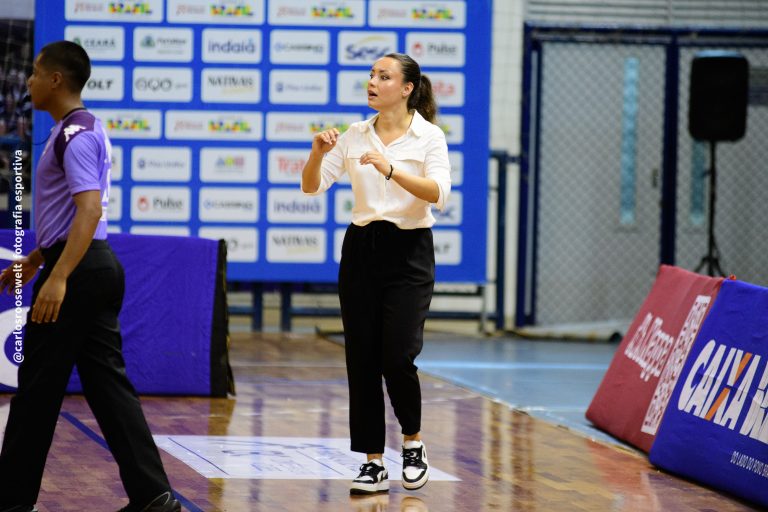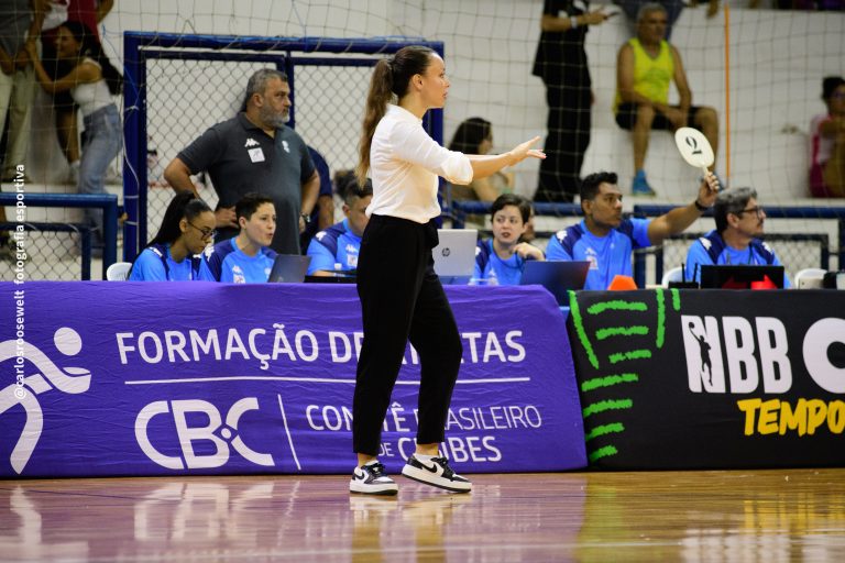 Técnico da equipe Fortaleza Basquete Cearense pede tempo.