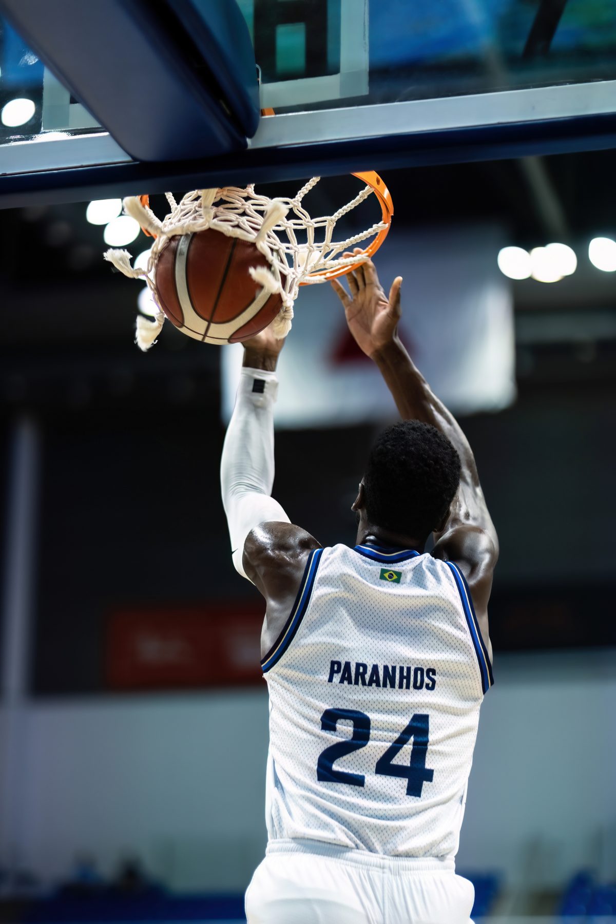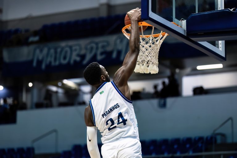 Cassiano pega rebote ofensivo.