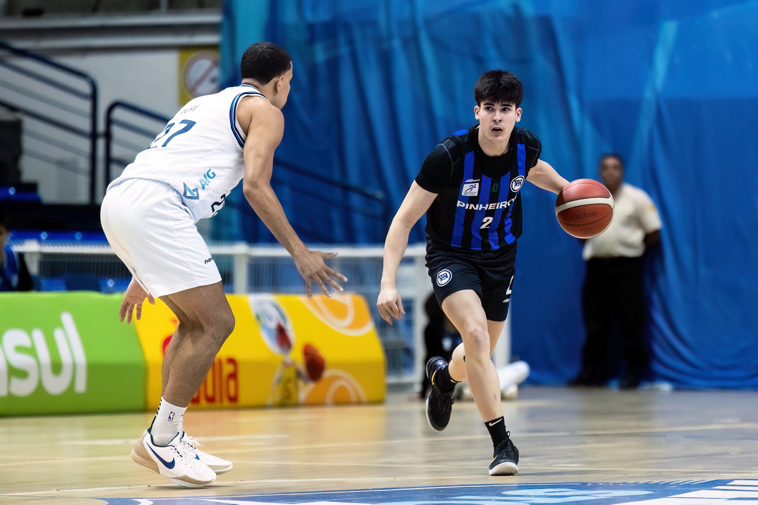 O primeiro período foi disputado em alto nível. O KTO Minas começou melhor, aproveitando a defesa mais estática do Pinheiros para castigar no garrafão com Alexandre Paranhos. Mas, após um pedido de tempo em que o técnico Gustavinho De Conti cobrou mais intensidade e afirmou que sua equipe estava “muito soft”, o time paulista respondeu com uma corrida de 7 a 0 e equilibrou o confronto. O placar de 23 a 21 para a equipe mineira resumiu bem o que aconteceu no quarto inicial.