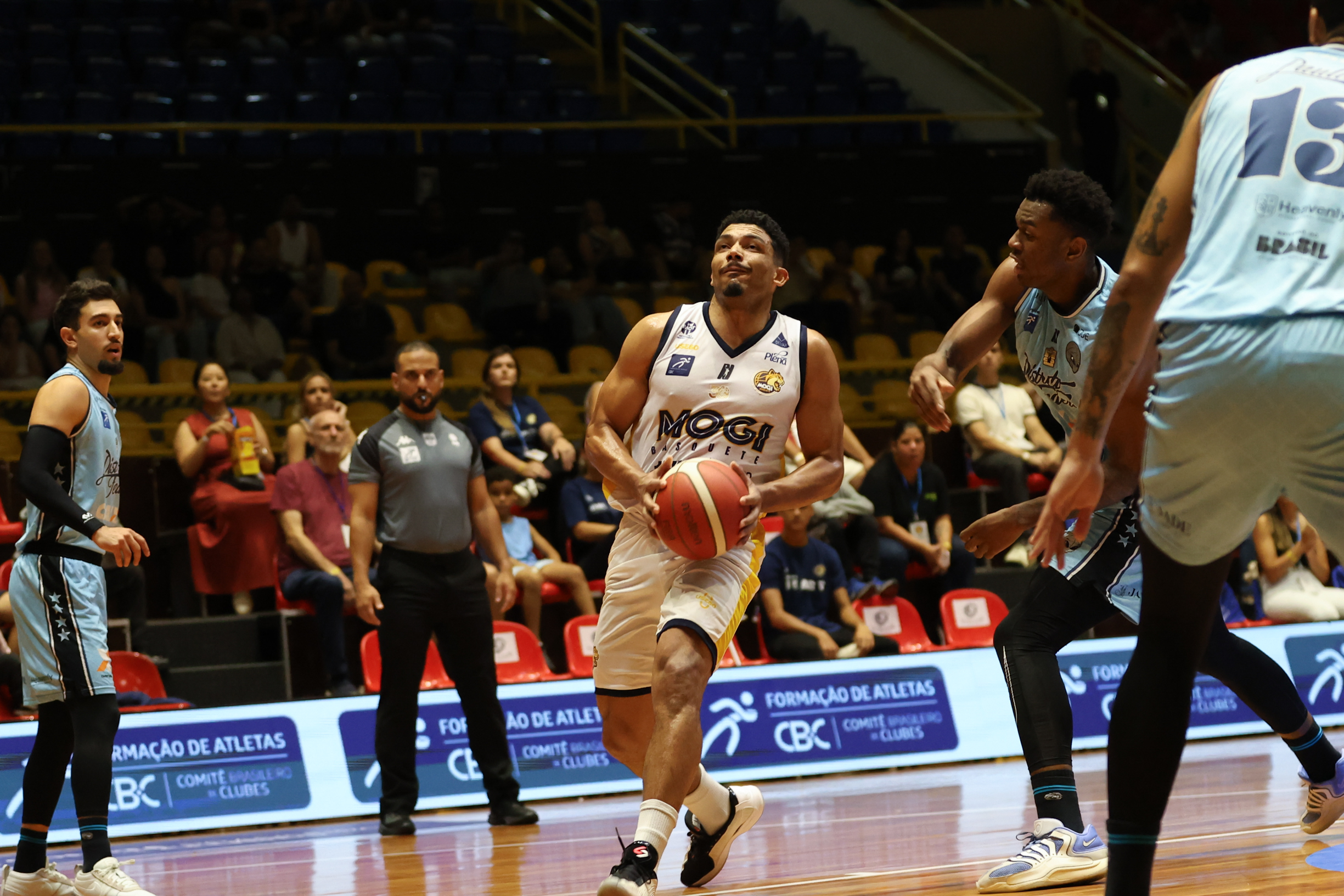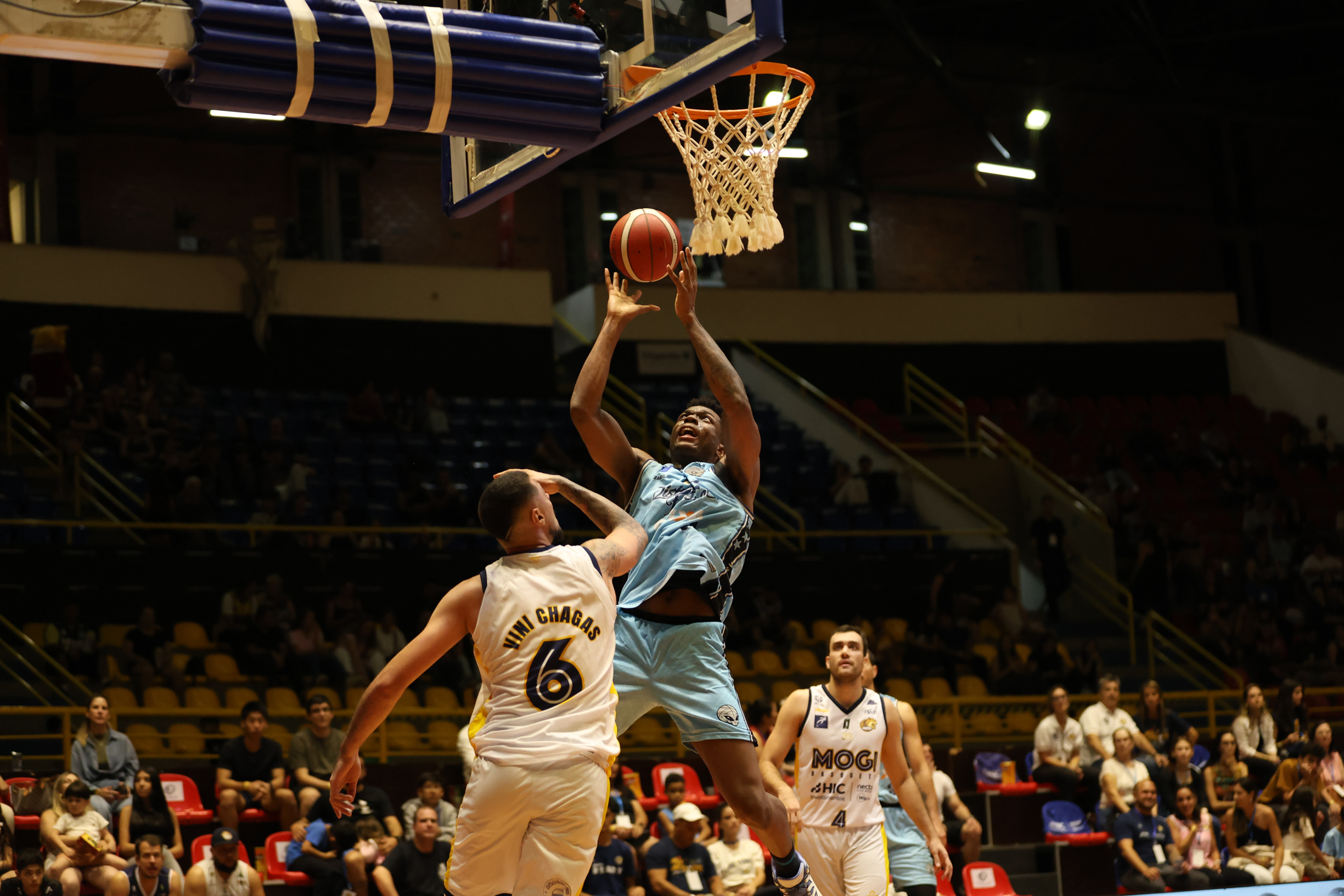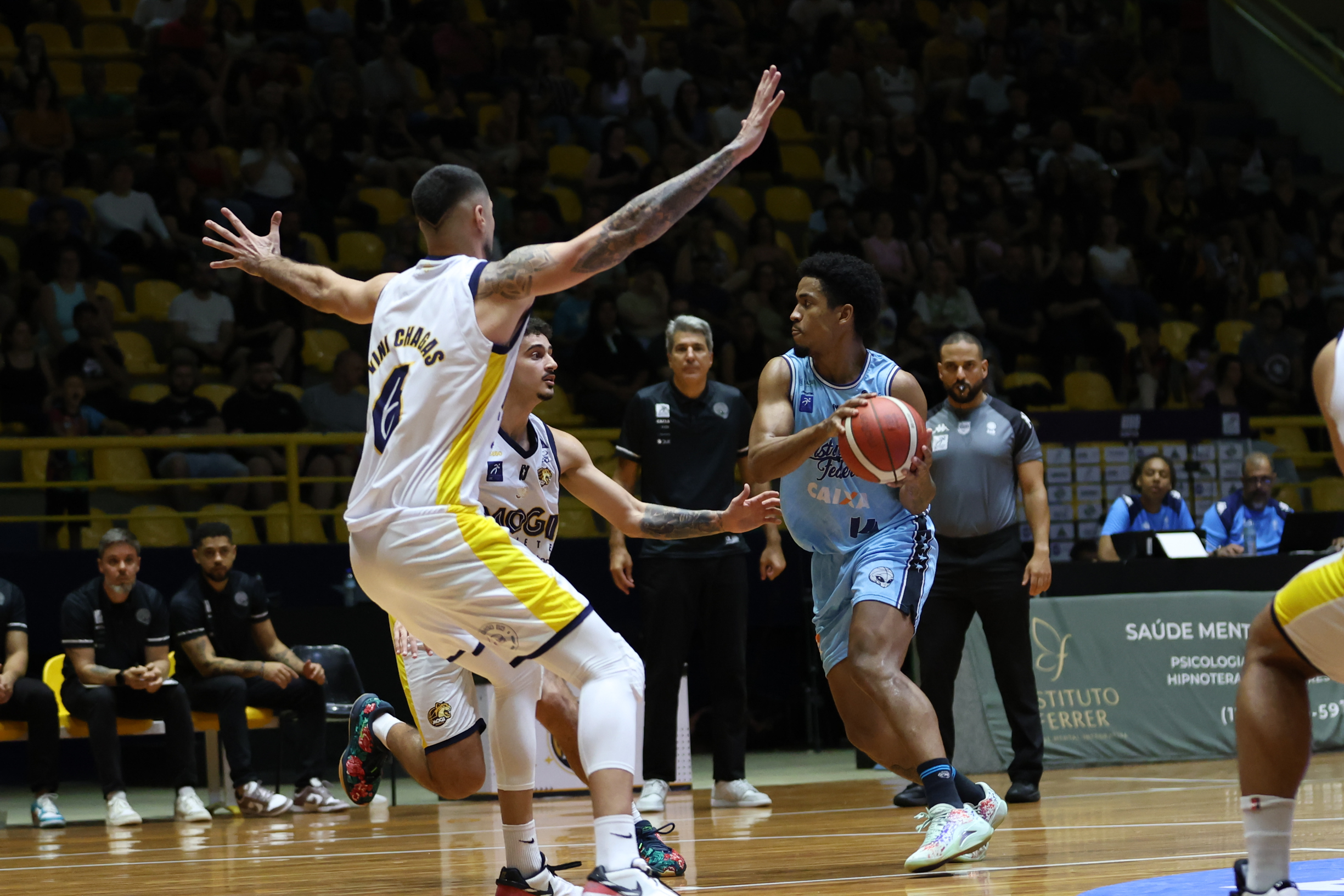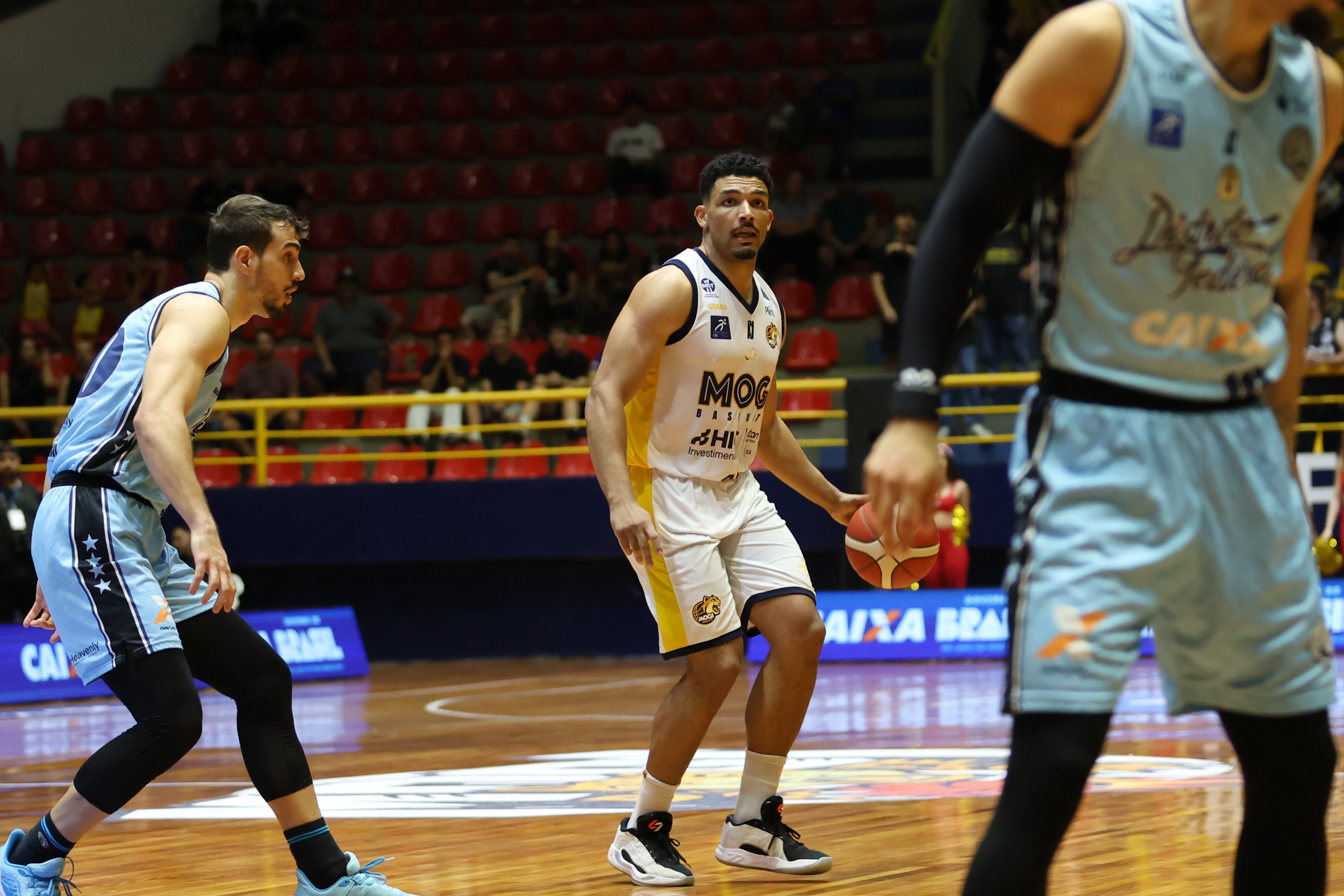 No segundo período, o Mogi Basquete elevou o nível de intensidade defensiva e encontrou no perímetro o caminho para mudar o jogo. Com três bolas triplas sequenciais, a equipe mogiana empatou e virou o placar, passando a controlar a parcial. A postura mais agressiva na defesa foi determinante para limitar o ataque do CAIXA/Brasília a apenas nove pontos, enquanto o time da casa produziu 16 e foi para o intervalo com seis de vantagem: 31 a 25.