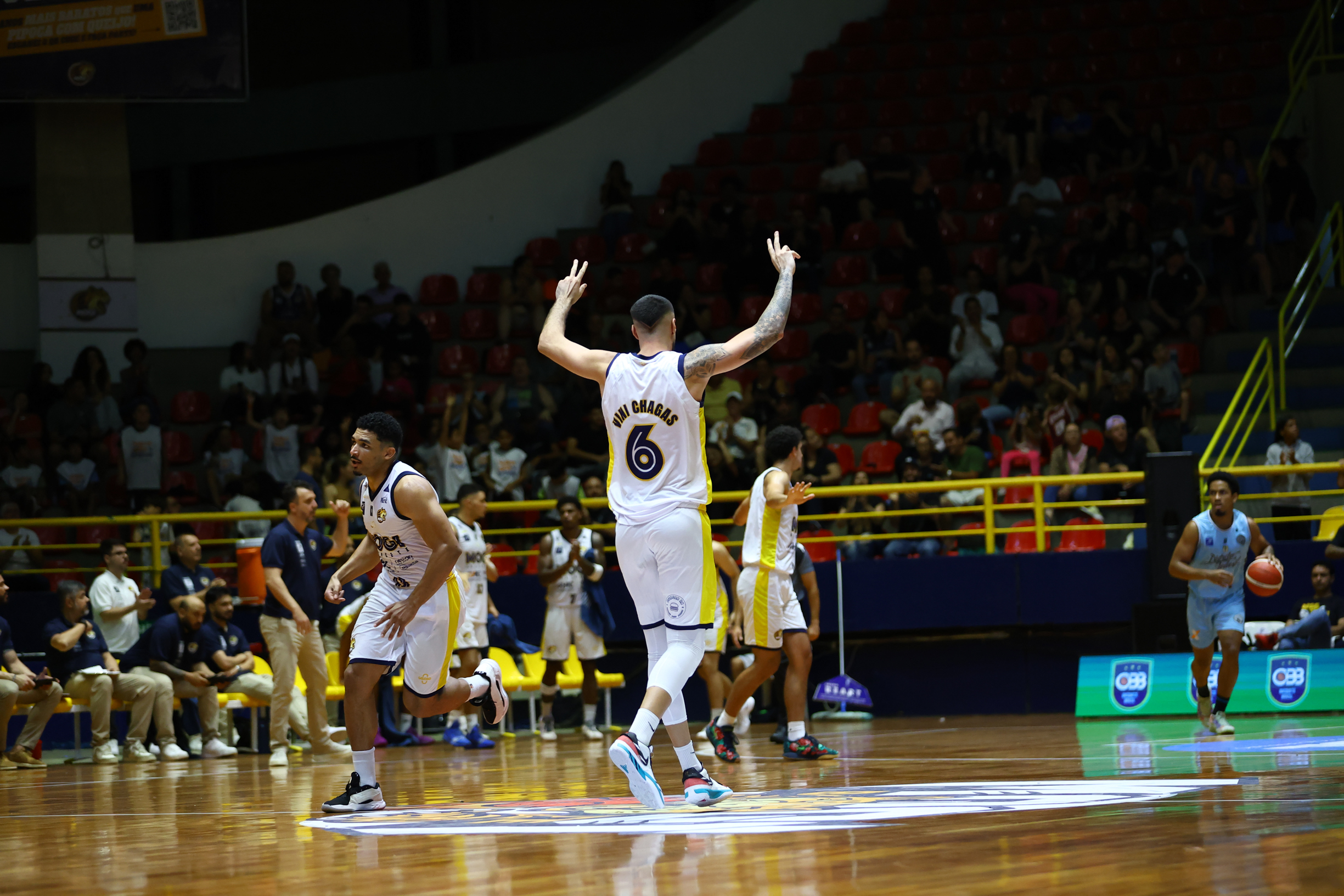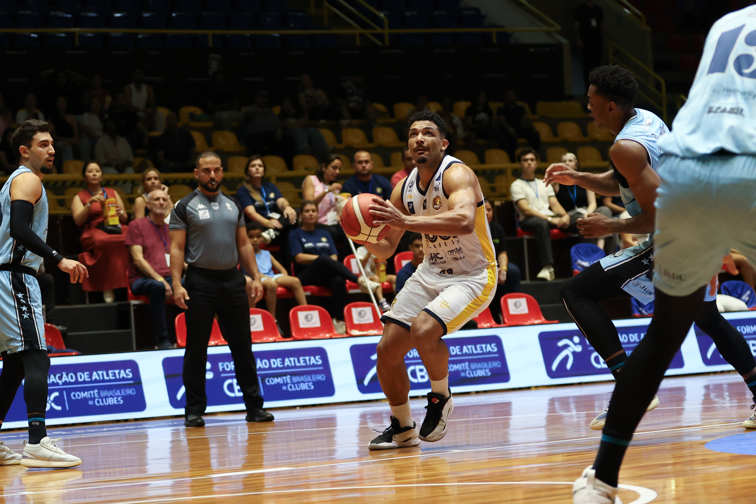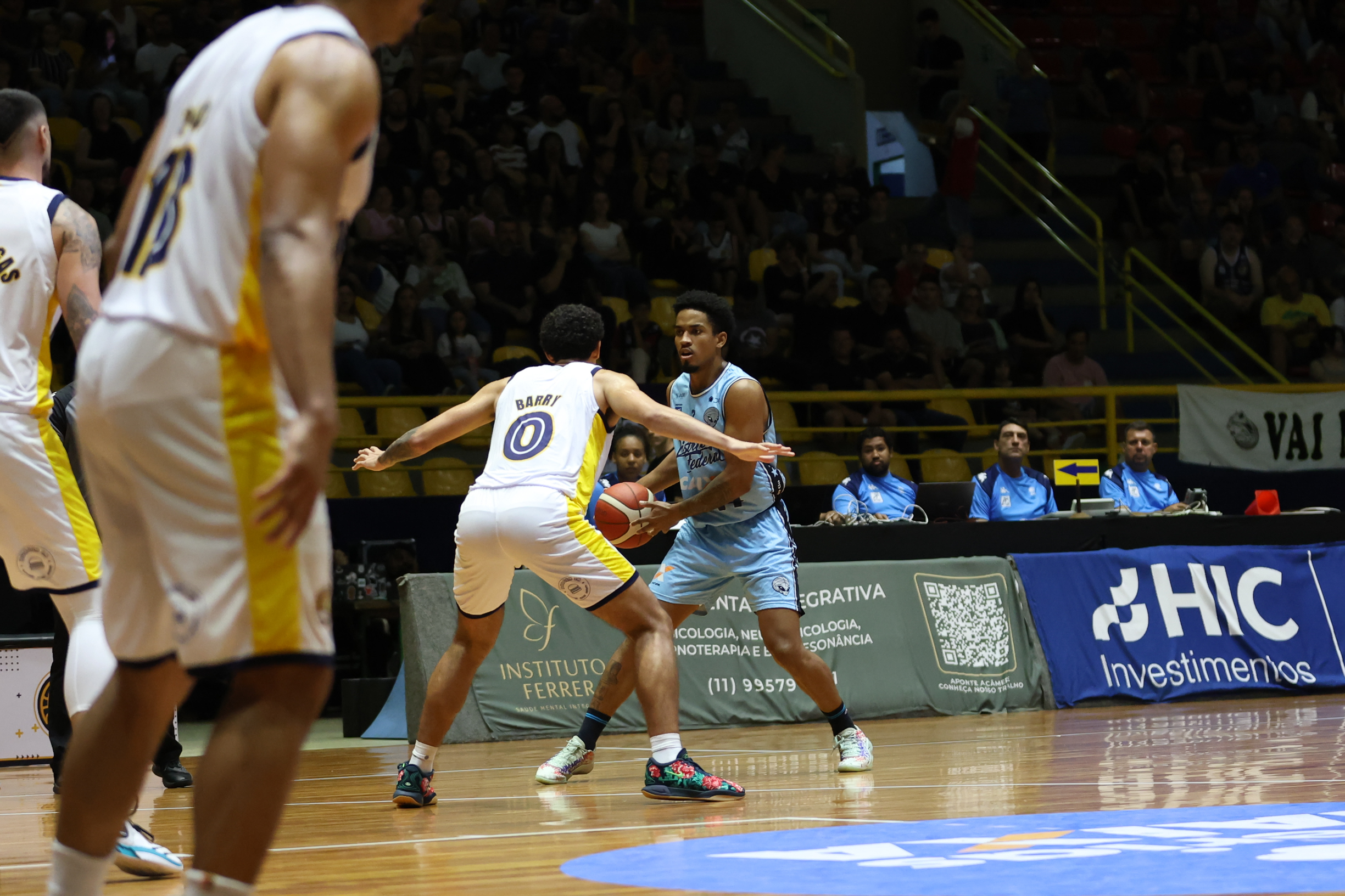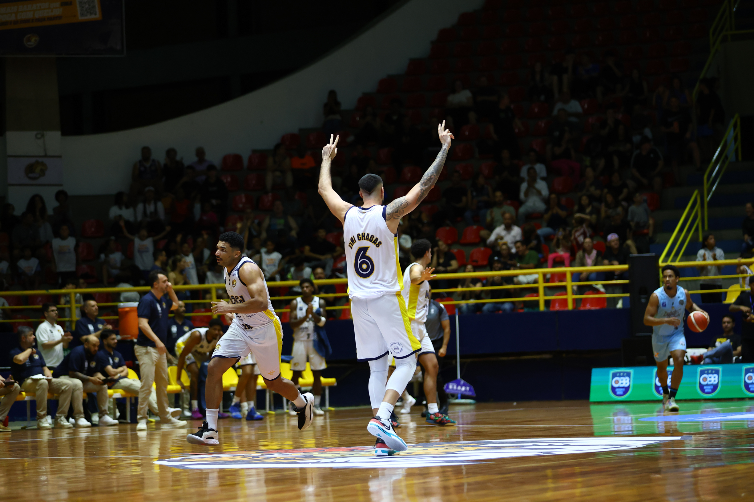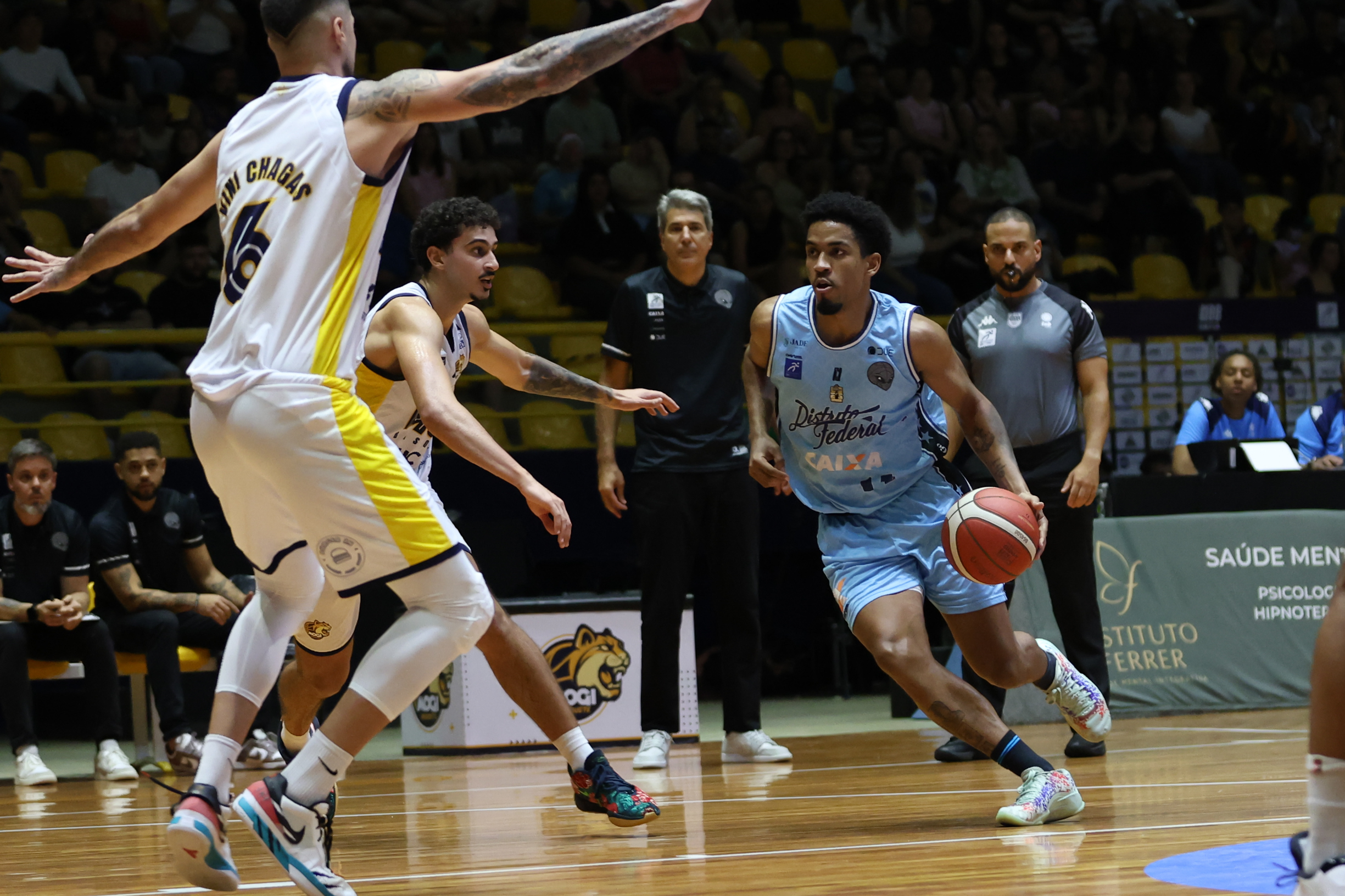 No segundo período, o Mogi Basquete elevou o nível de intensidade defensiva e encontrou no perímetro o caminho para mudar o jogo. Com três bolas triplas sequenciais, a equipe mogiana empatou e virou o placar, passando a controlar a parcial. A postura mais agressiva na defesa foi determinante para limitar o ataque do CAIXA/Brasília a apenas nove pontos, enquanto o time da casa produziu 16 e foi para o intervalo com seis de vantagem: 31 a 25.